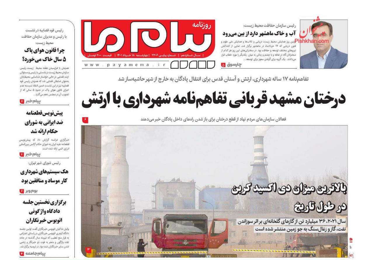 پیام ما ، چهارشنبه ۱۸ خرداد