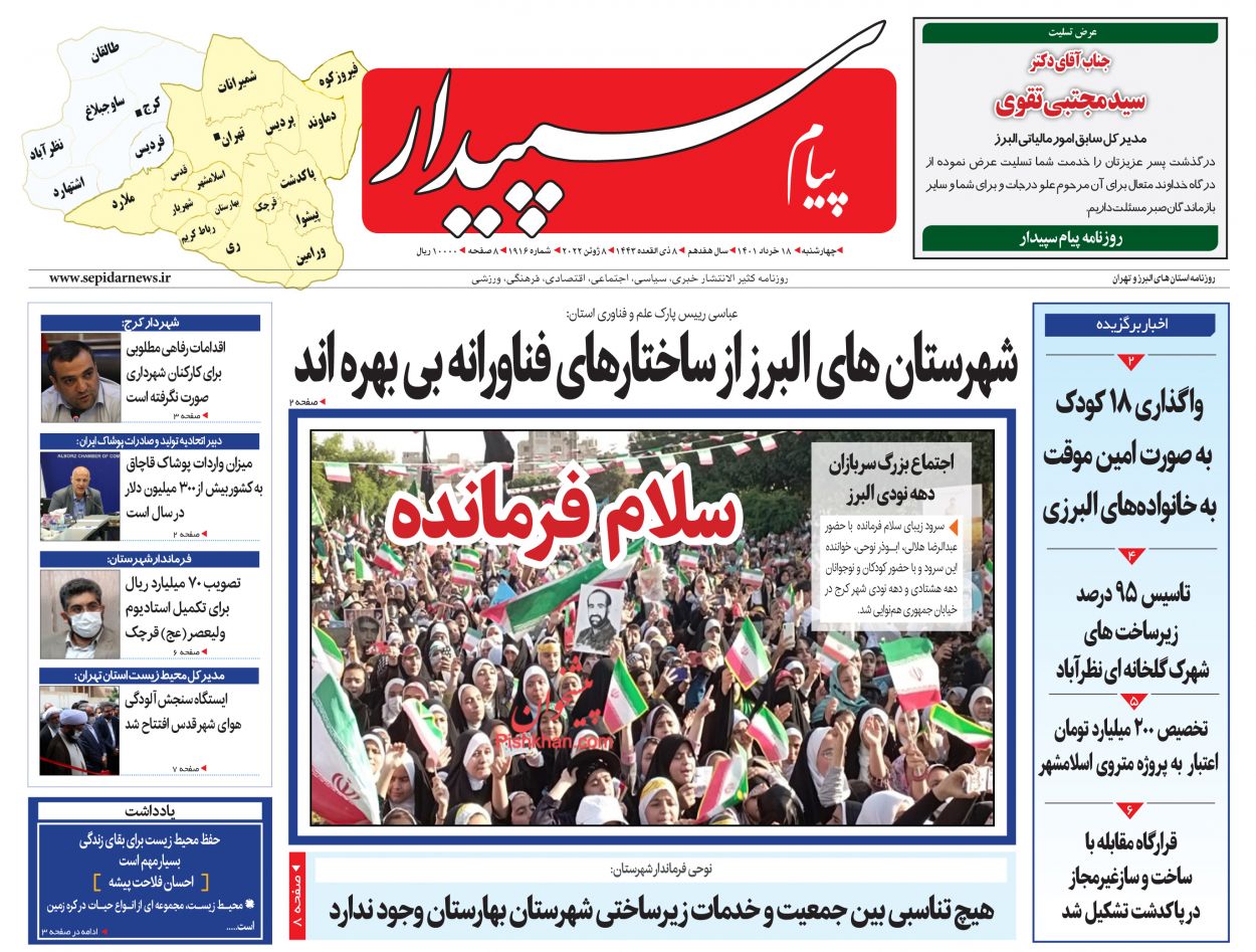 سپهر ایرانیان ، چهارشنبه ۱۸ خرداد