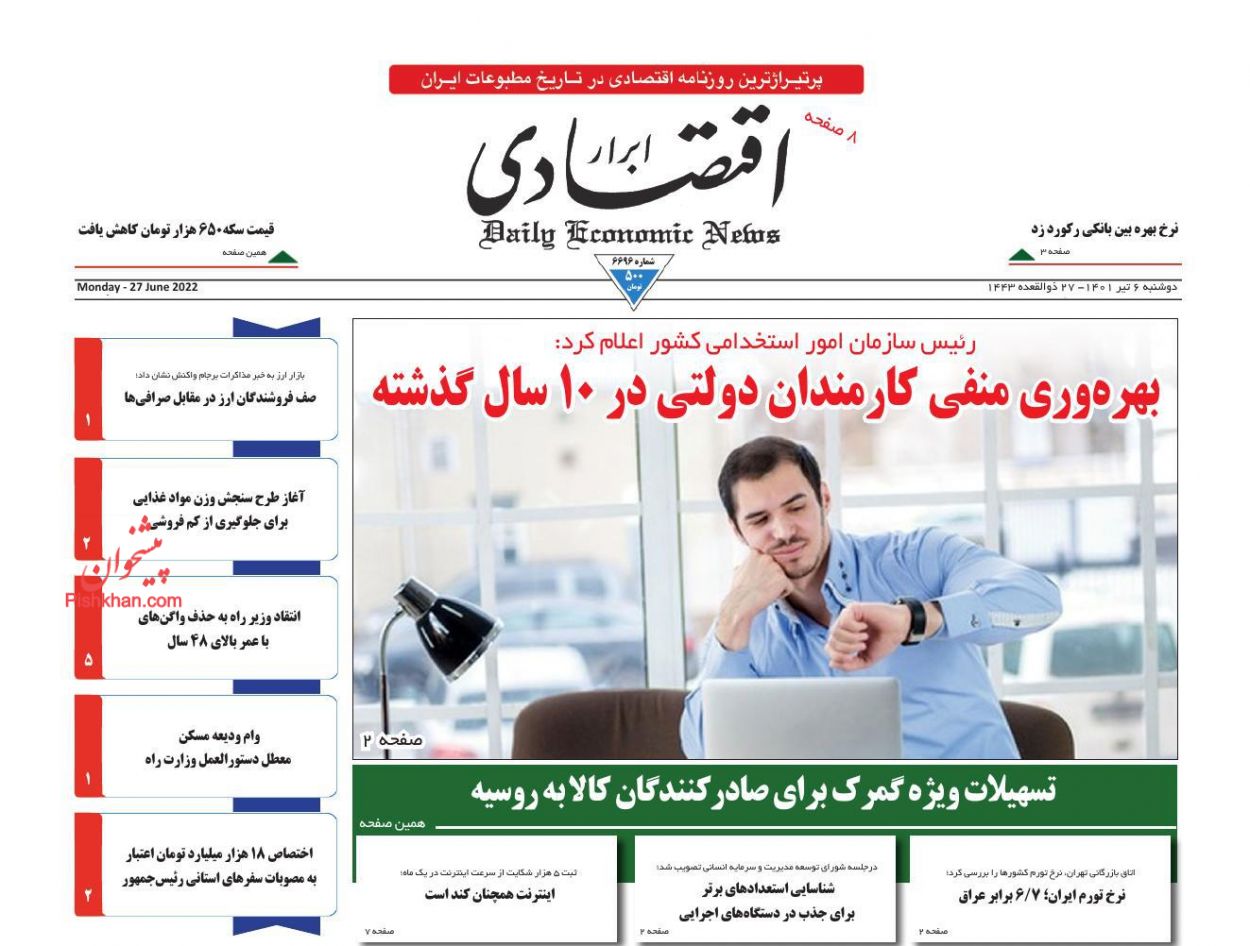 ابرار اقتصادی ، دوشنبه ۶ تیر