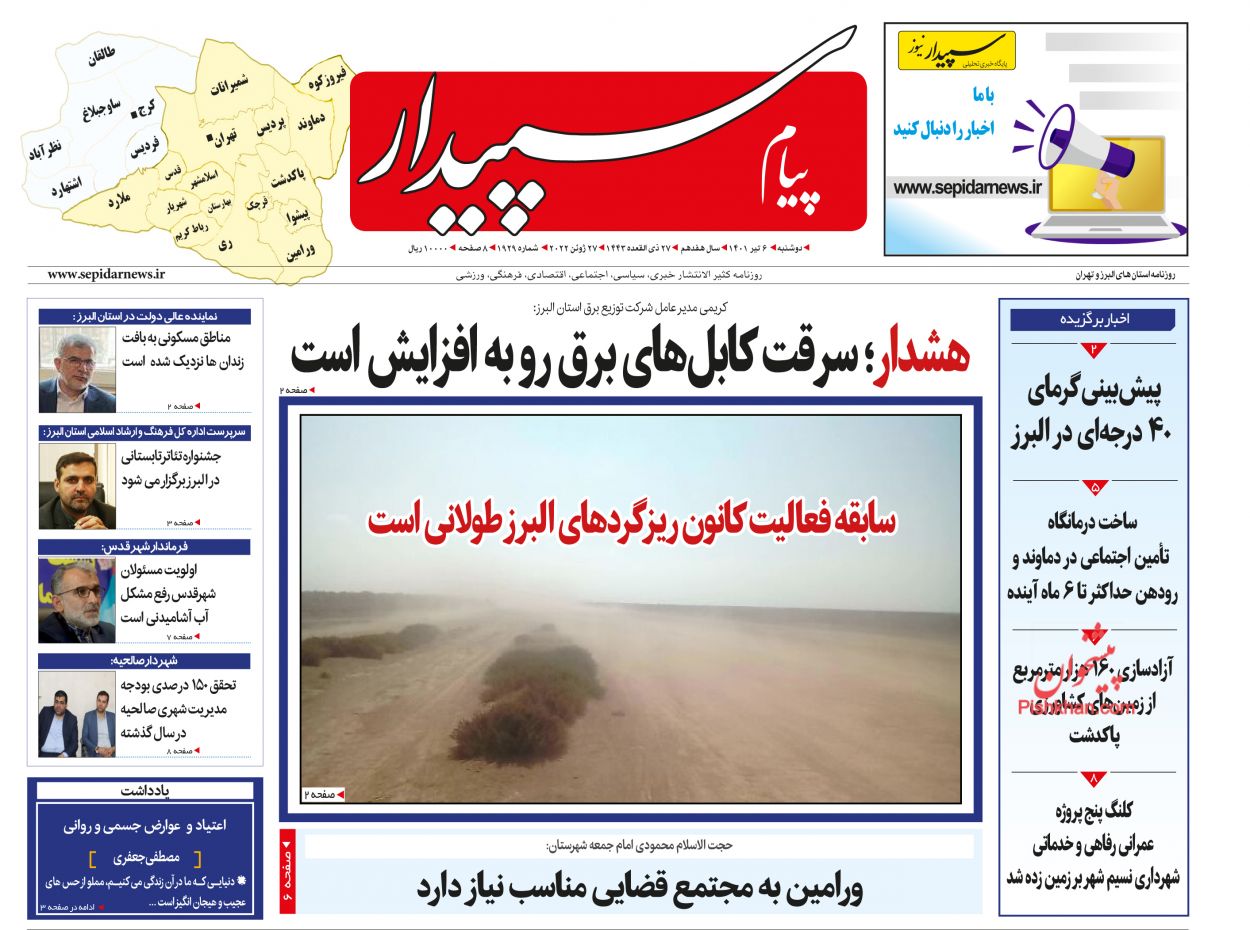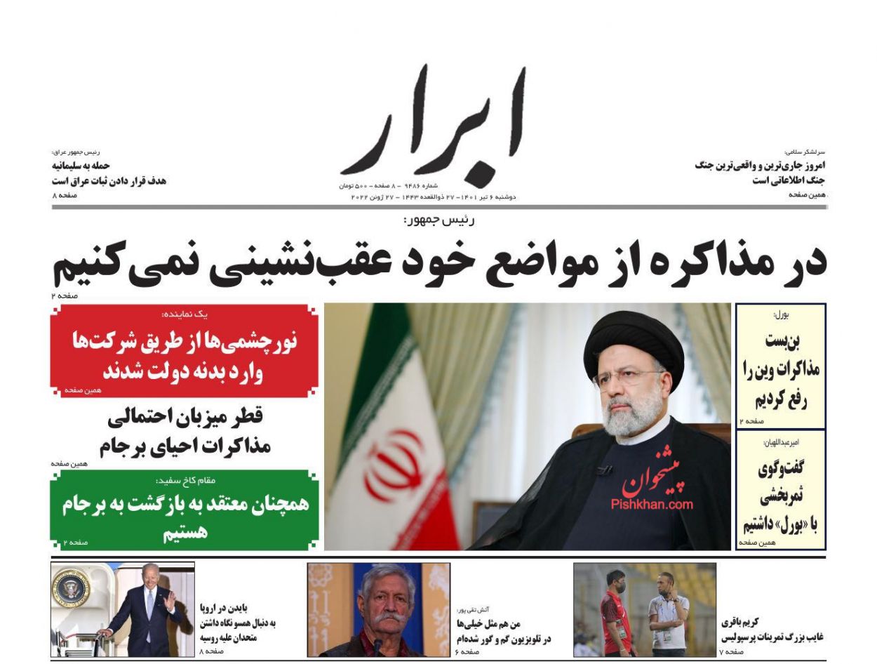 ابرار ، دوشنبه ۶ تیر