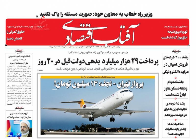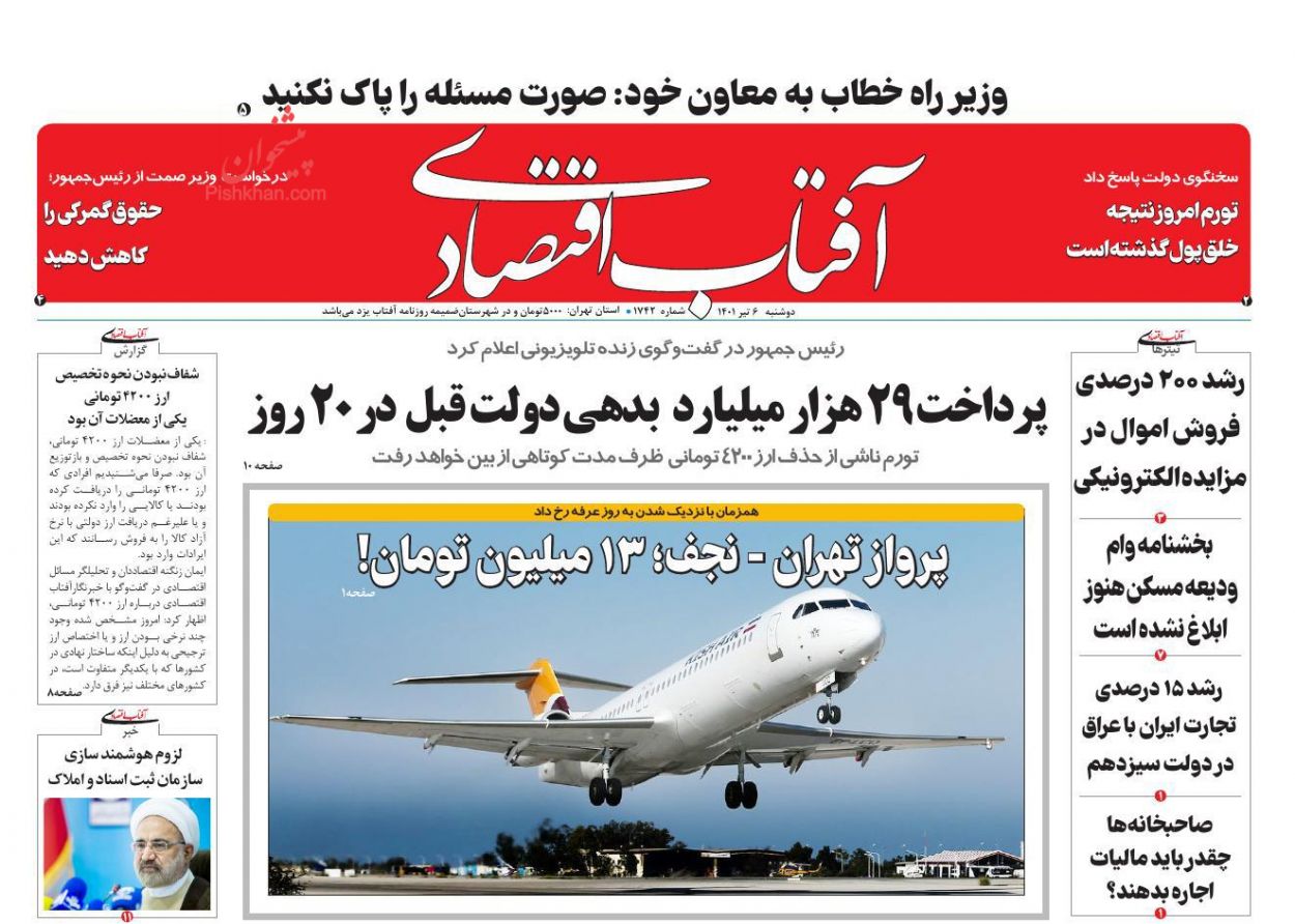 آفتاب اقتصادی ، دوشنبه ۶ تیر