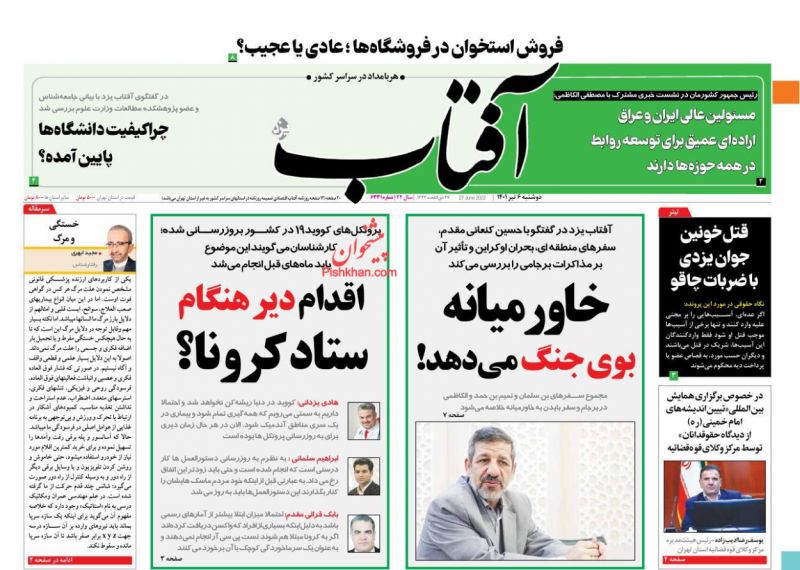 آفتاب یزد ، دوشنبه ۶ تیر