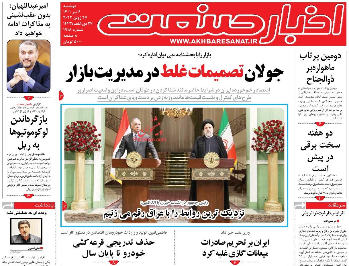 اخبار صنعت ، دوشنبه ۶ تیر