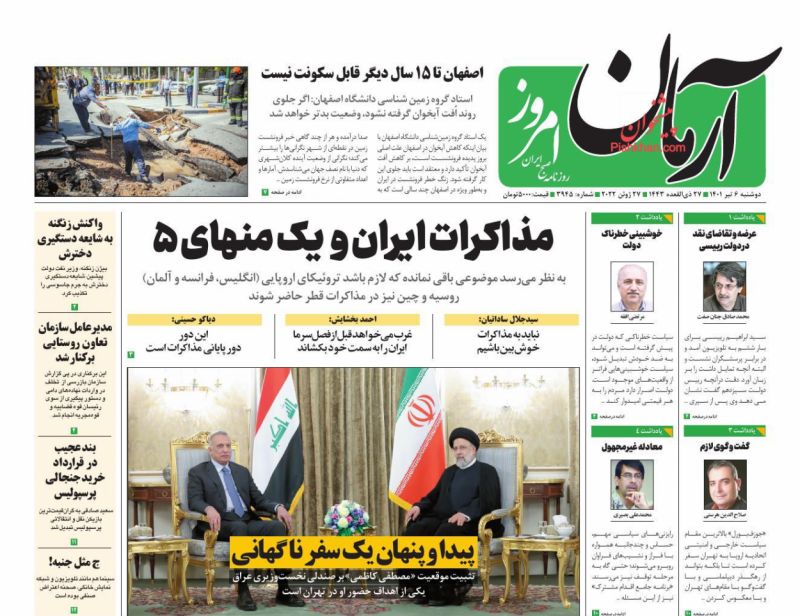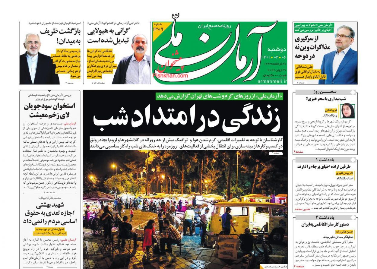 آرمان امروز ، دوشنبه ۶ تیر