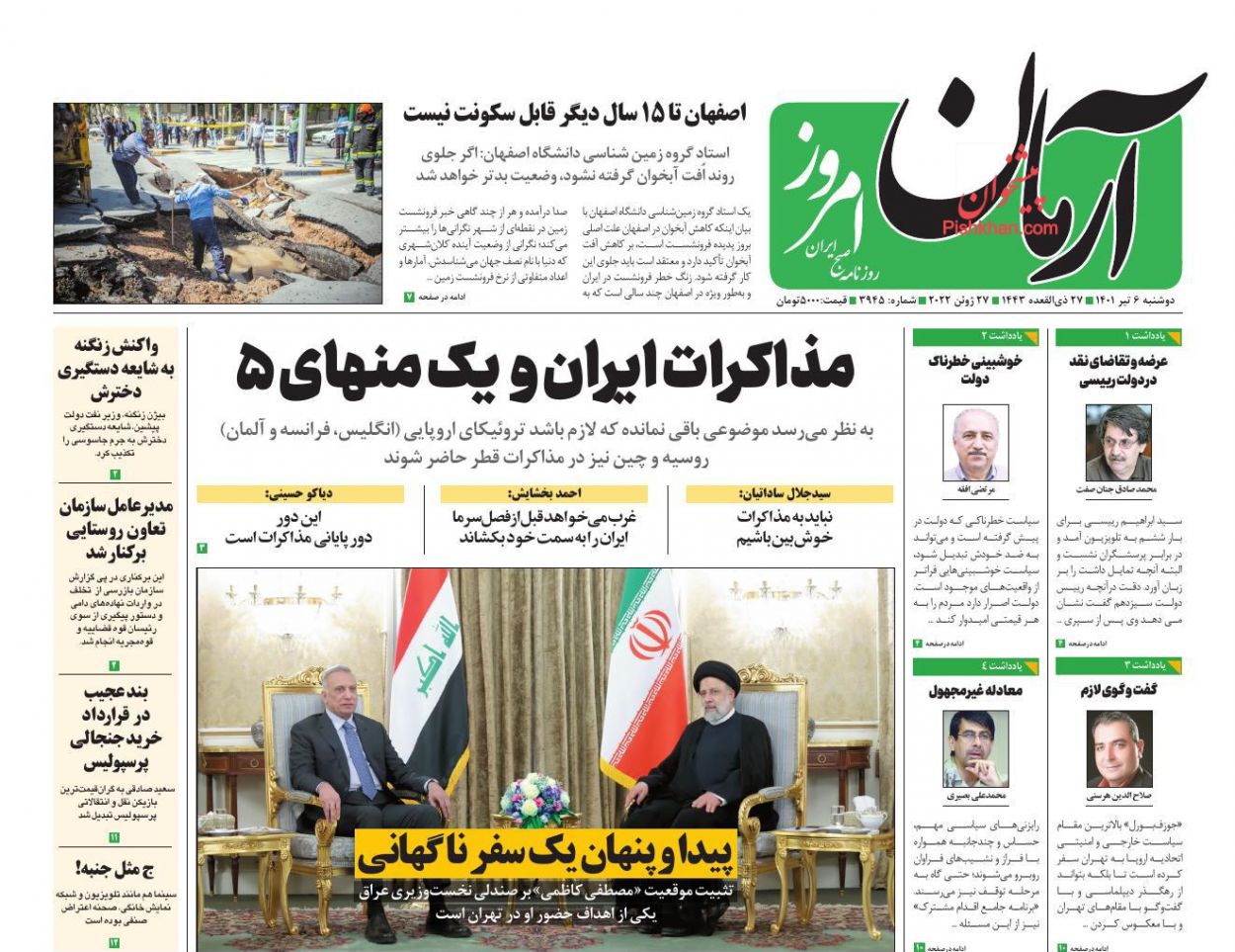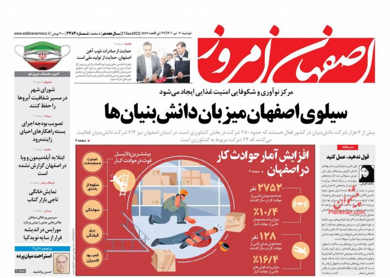 اصفهان امروز ، دوشنبه ۶ تیر