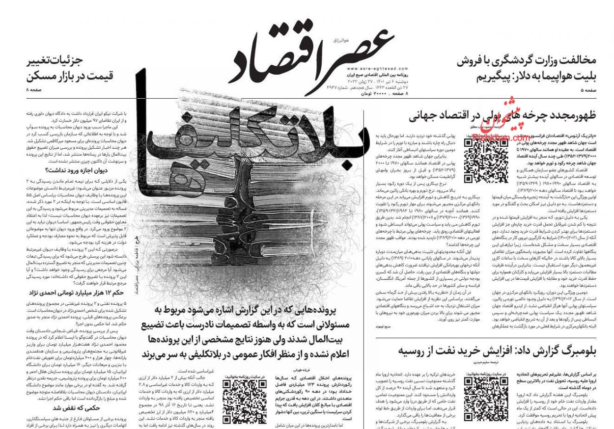 عصر اقتصاد ، دوشنبه ۶ تیر