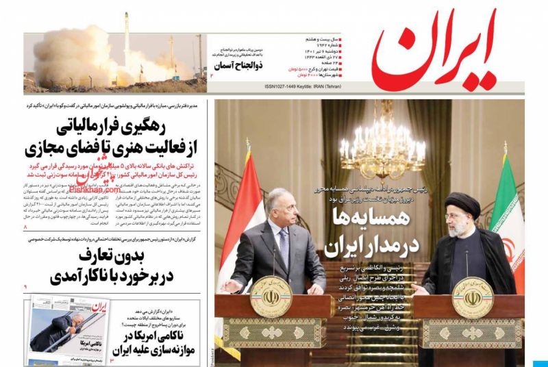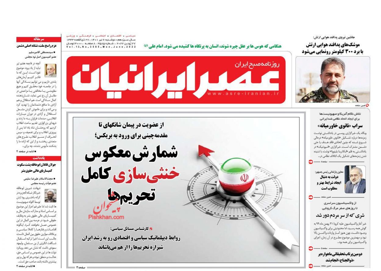 عصر ایرانیان ، دوشنبه ۶ تیر