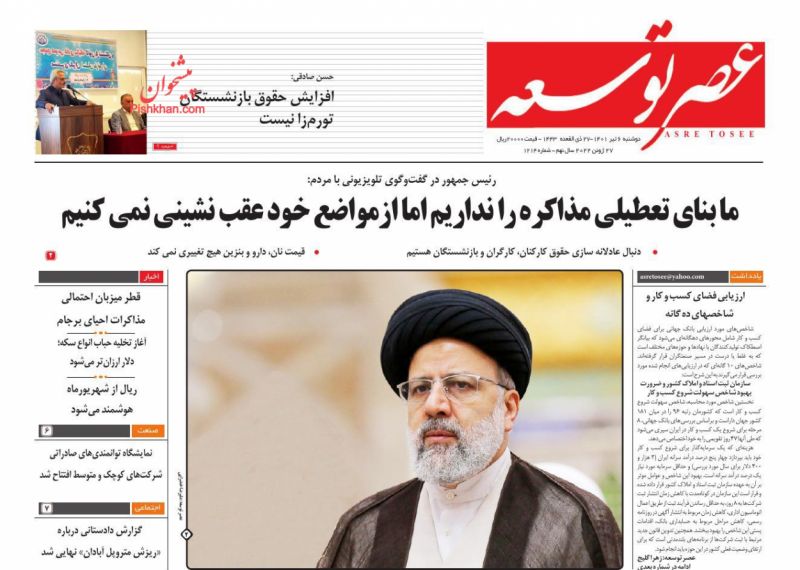 عصر توسعه ، دوشنبه ۶ تیر