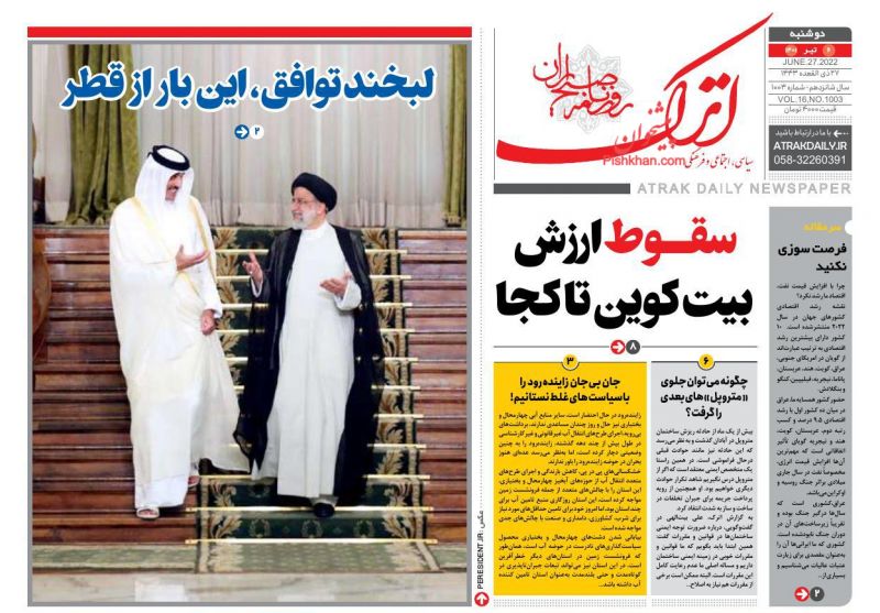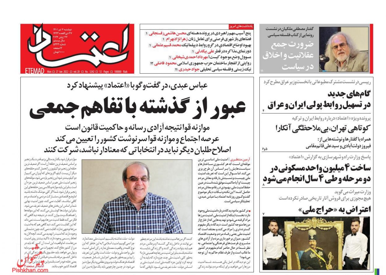 اعتماد ، دوشنبه ۶ تیر