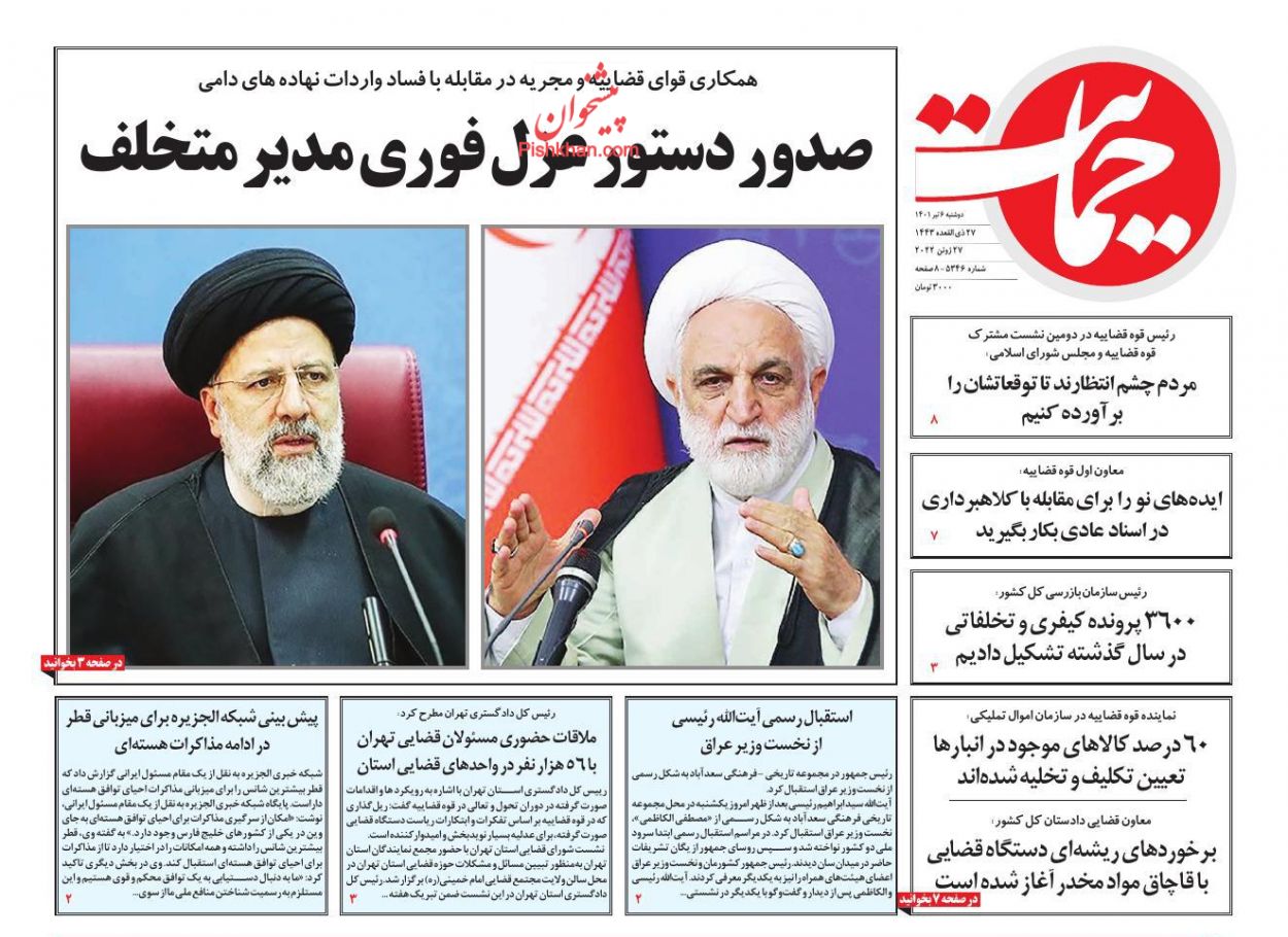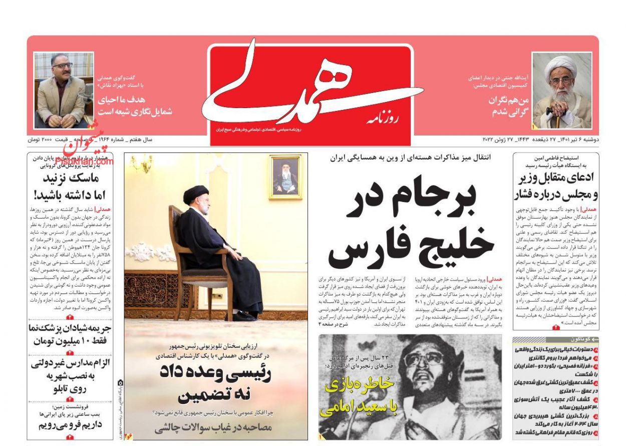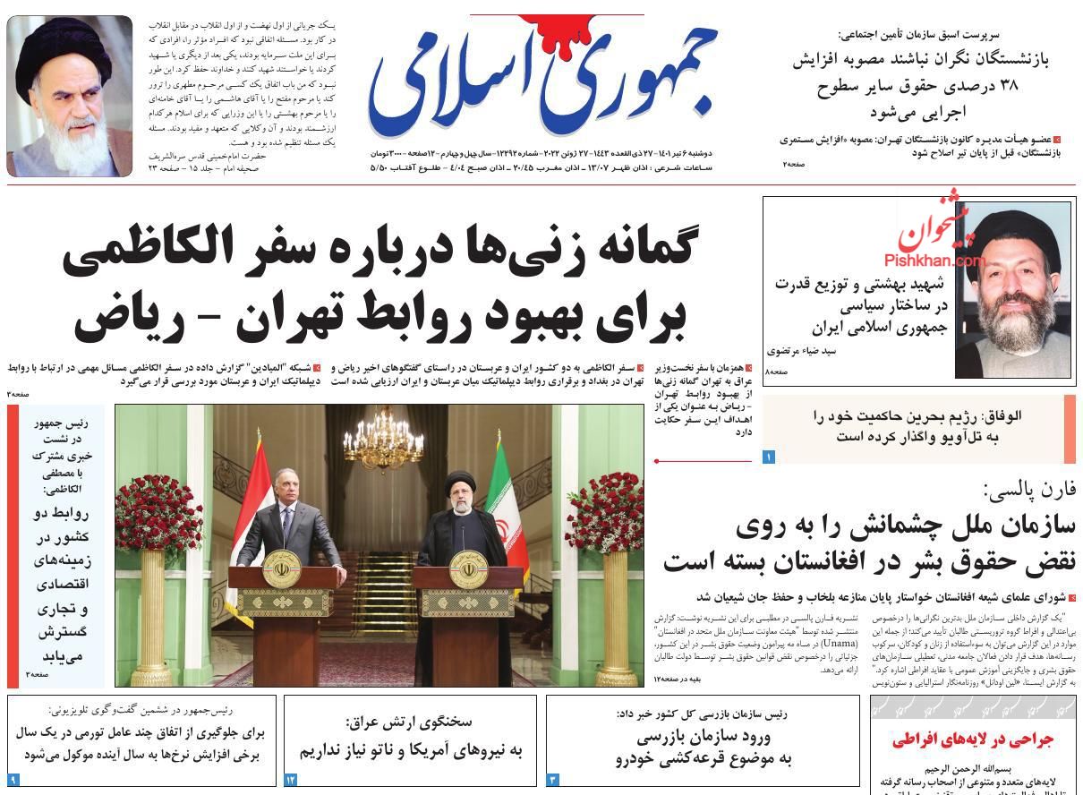 جمهوری اسلامی ، دوشنبه ۶ تیر