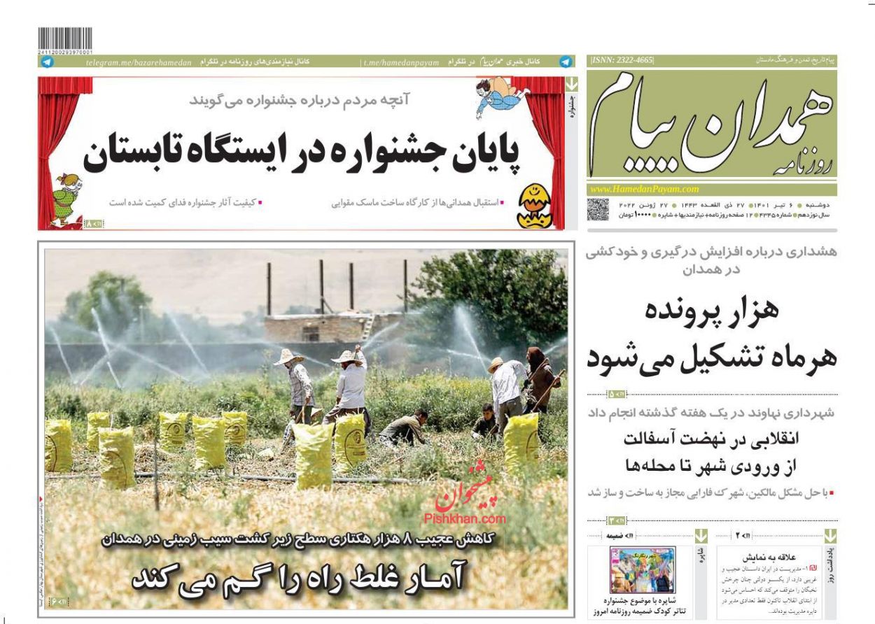 همدان پیام ، دوشنبه ۶ تیر