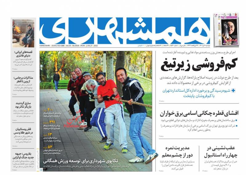 همشهری ، دوشنبه ۶ تیر