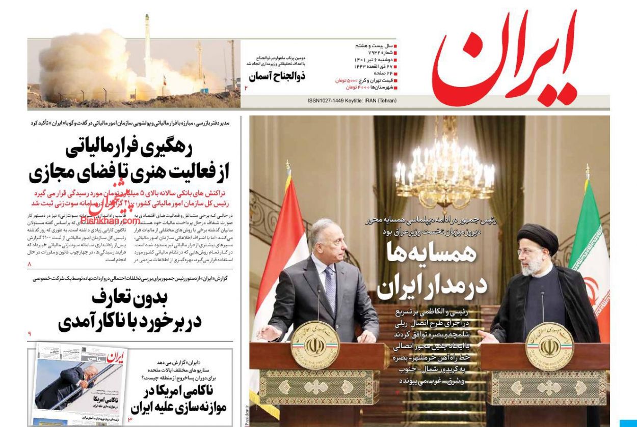 ایران ، دوشنبه ۶ تیر