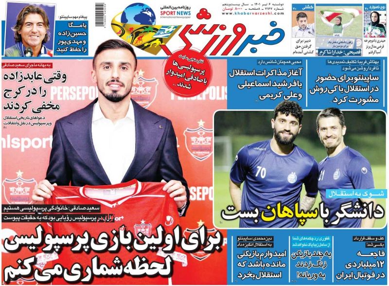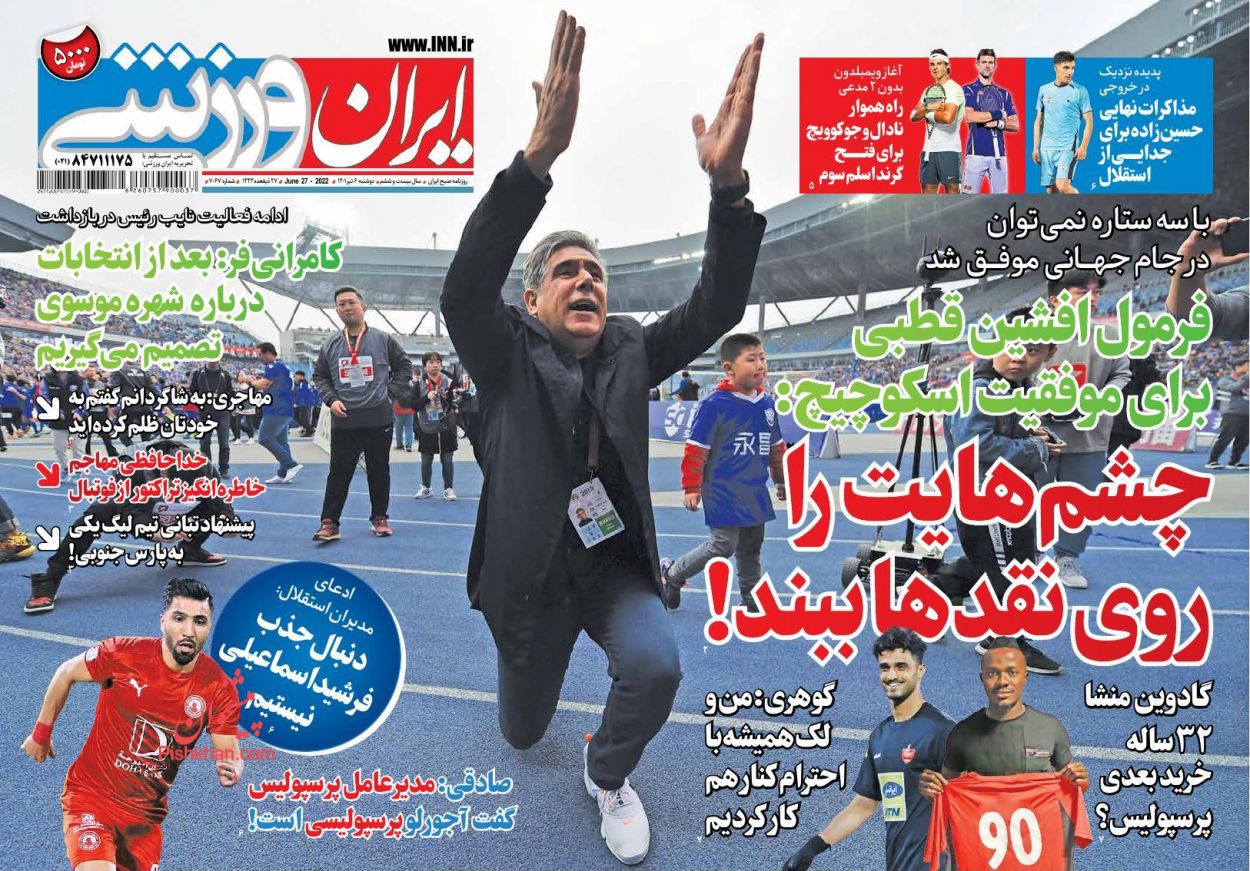 ایران ورزشی ، دوشنبه ۶ تیر