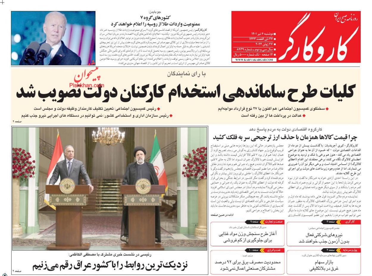 کار و کارگر ، دوشنبه ۶ تیر