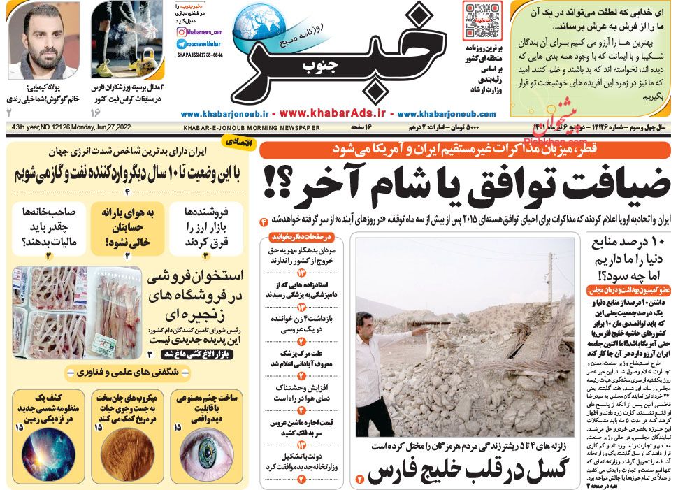 خبر جنوب ، دوشنبه ۶ تیر