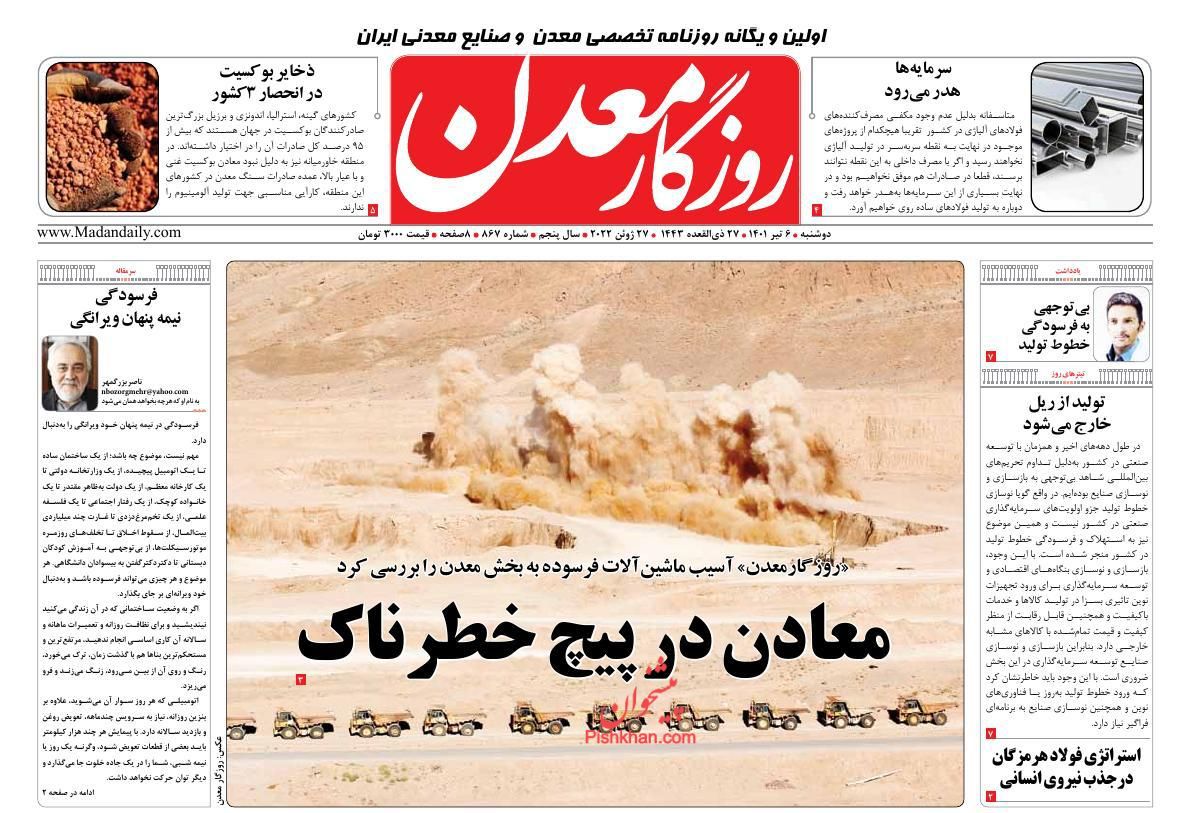 روزگار معدن ، دوشنبه ۶ تیر
