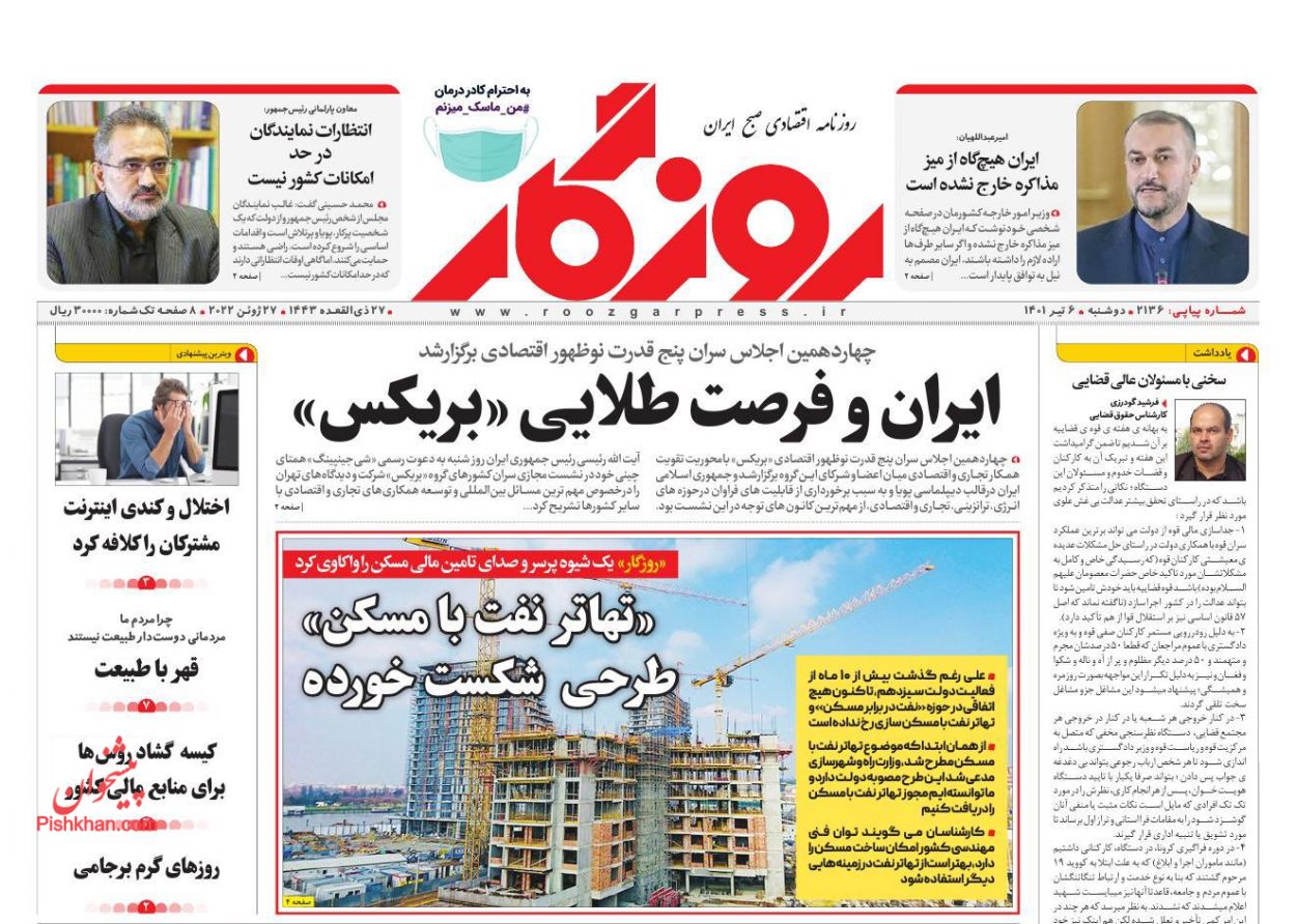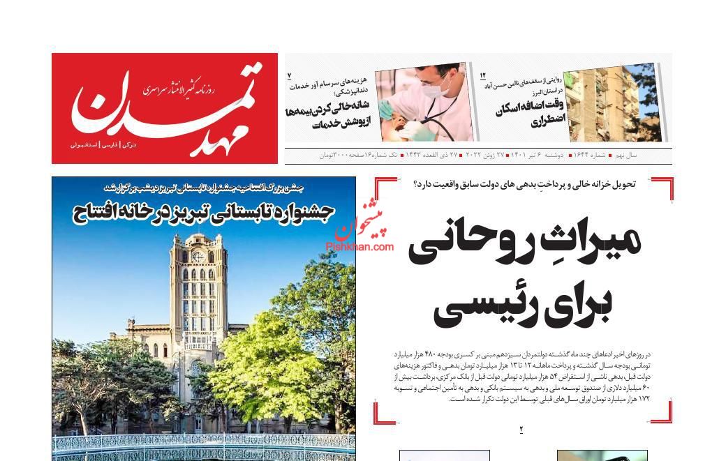 تدبیر تازه ، دوشنبه ۶ تیر