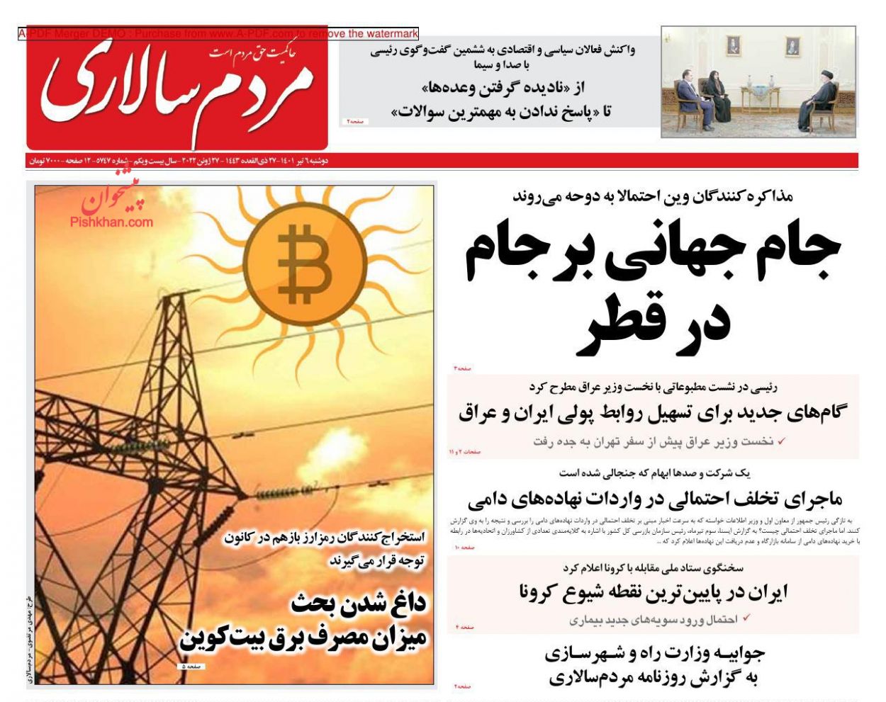 مردم سالاری ، دوشنبه ۶ تیر