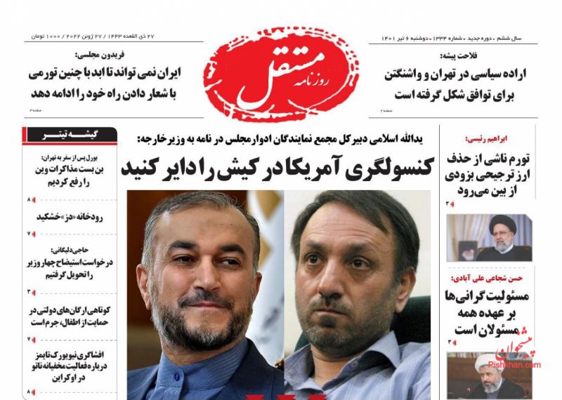 مستقل ، دوشنبه ۶ تیر