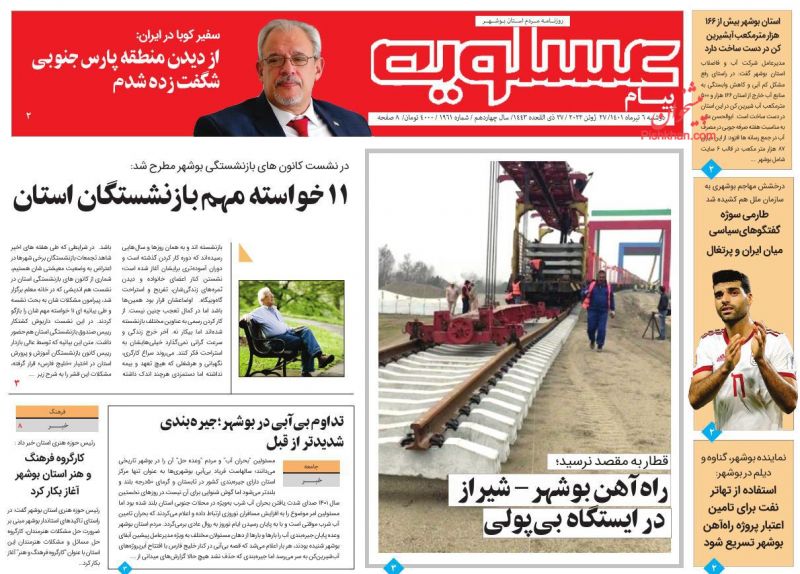 پیام عسلویه ، دوشنبه ۶ تیر
