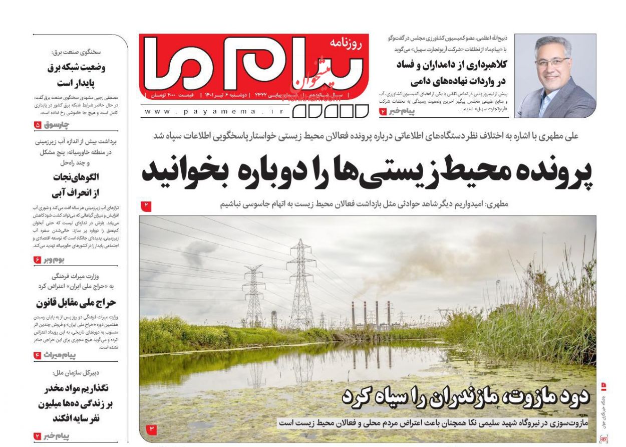 پیام ما ، دوشنبه ۶ تیر