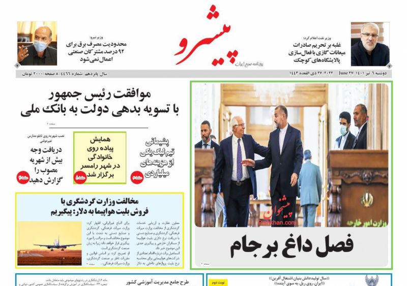 پیشرو ، دوشنبه ۶ تیر