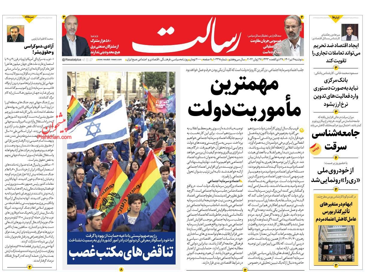رسالت ، دوشنبه ۶ تیر
