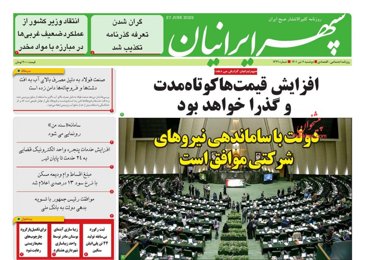 اقتصاد مردم ، دوشنبه ۶ تیر