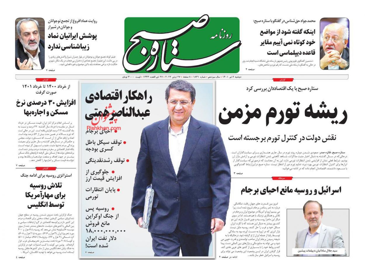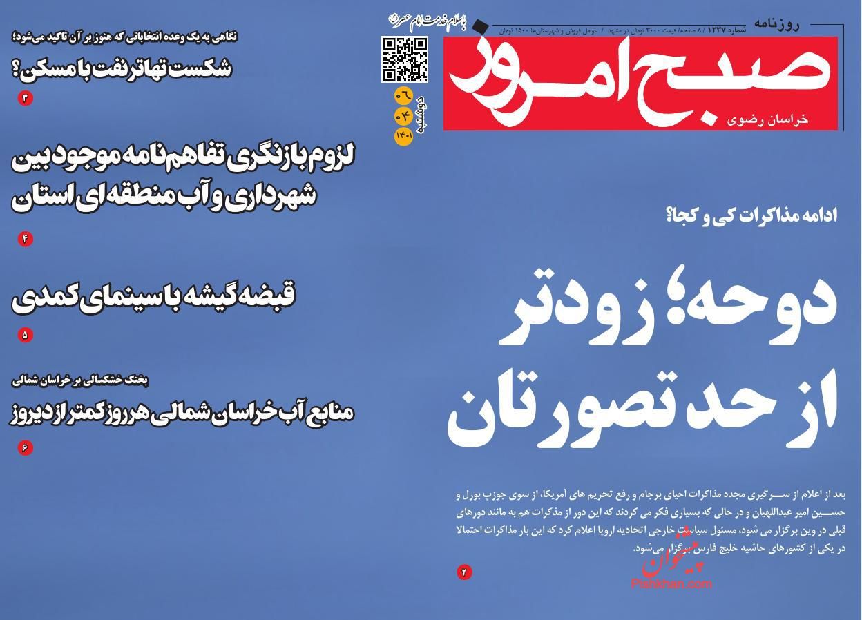 صبح امروز ، دوشنبه ۶ تیر