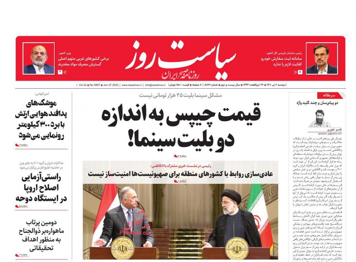 سیاست روز ، دوشنبه ۶ تیر