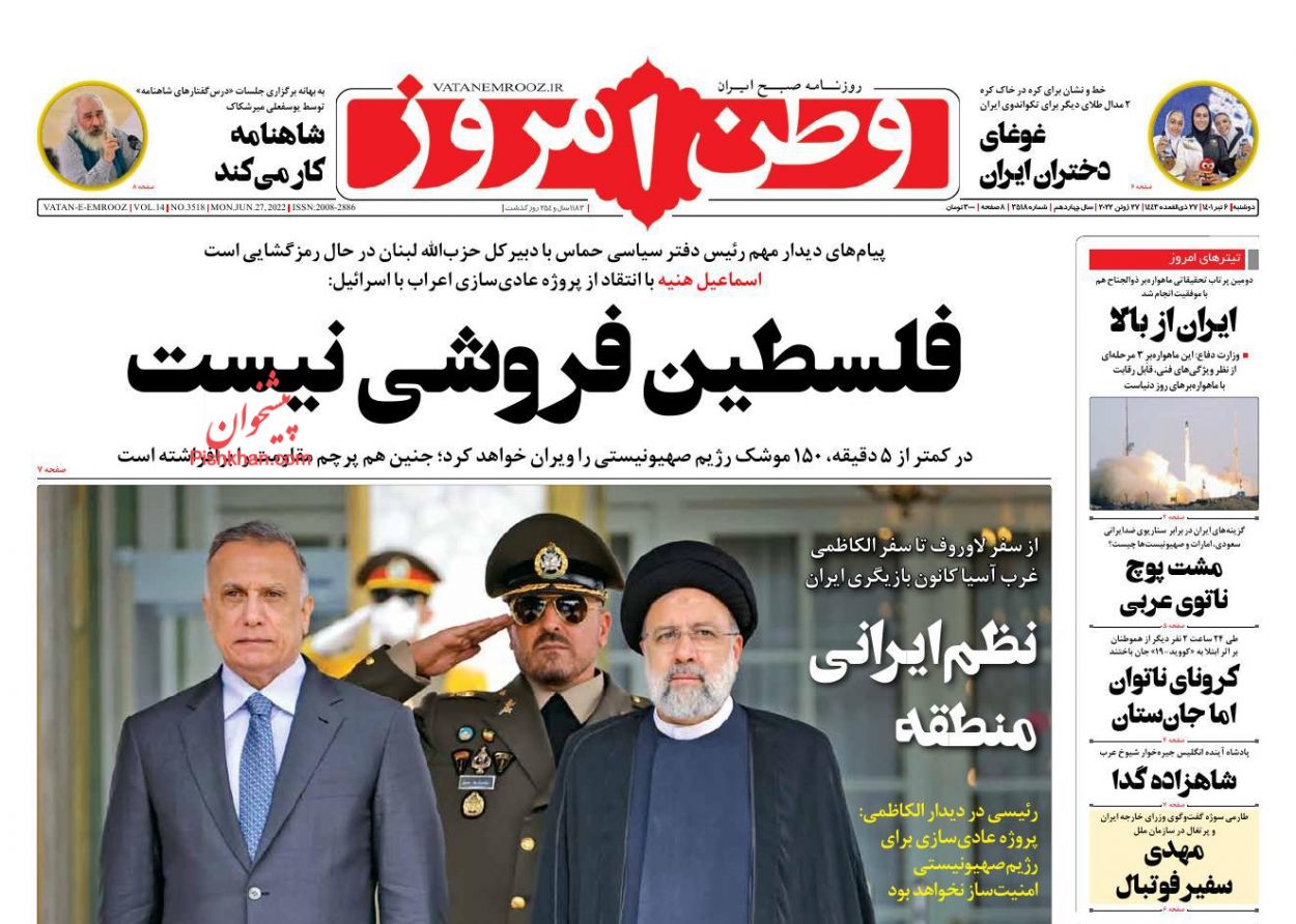 وطن امروز ، دوشنبه ۶ تیر