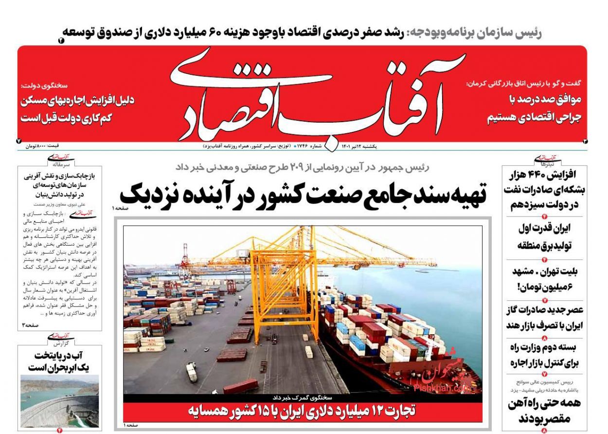 آفتاب اقتصادی ، یکشنبه ۱۲ تیر