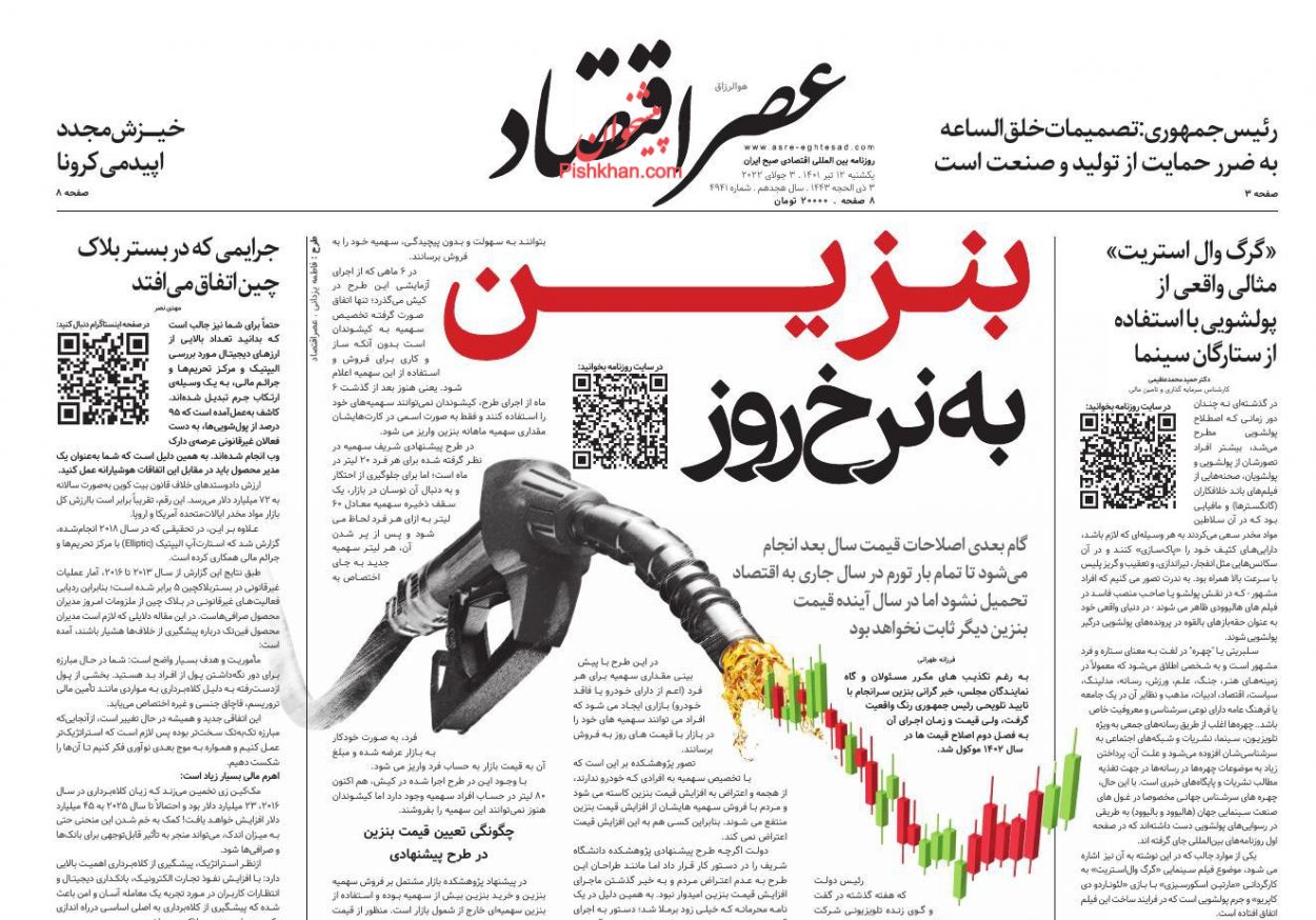 عصر اقتصاد ، یکشنبه ۱۲ تیر