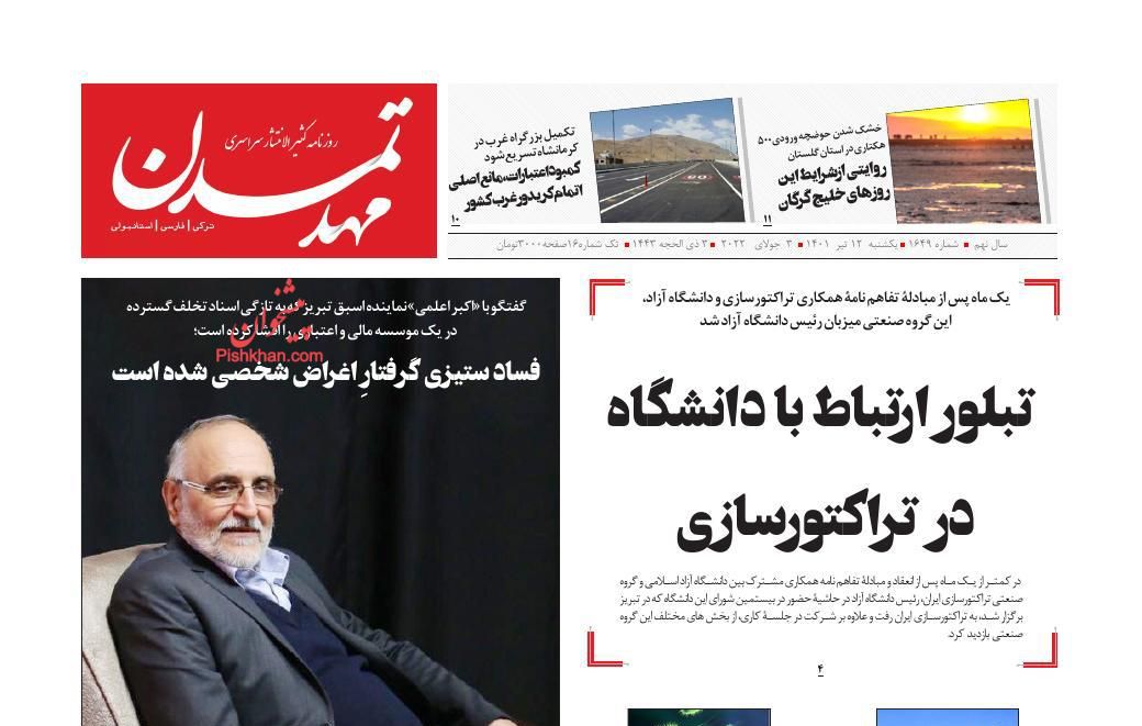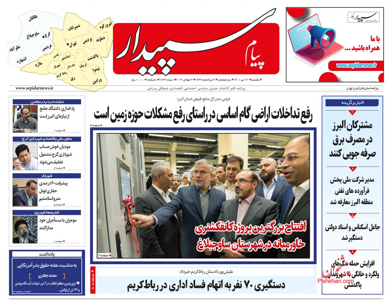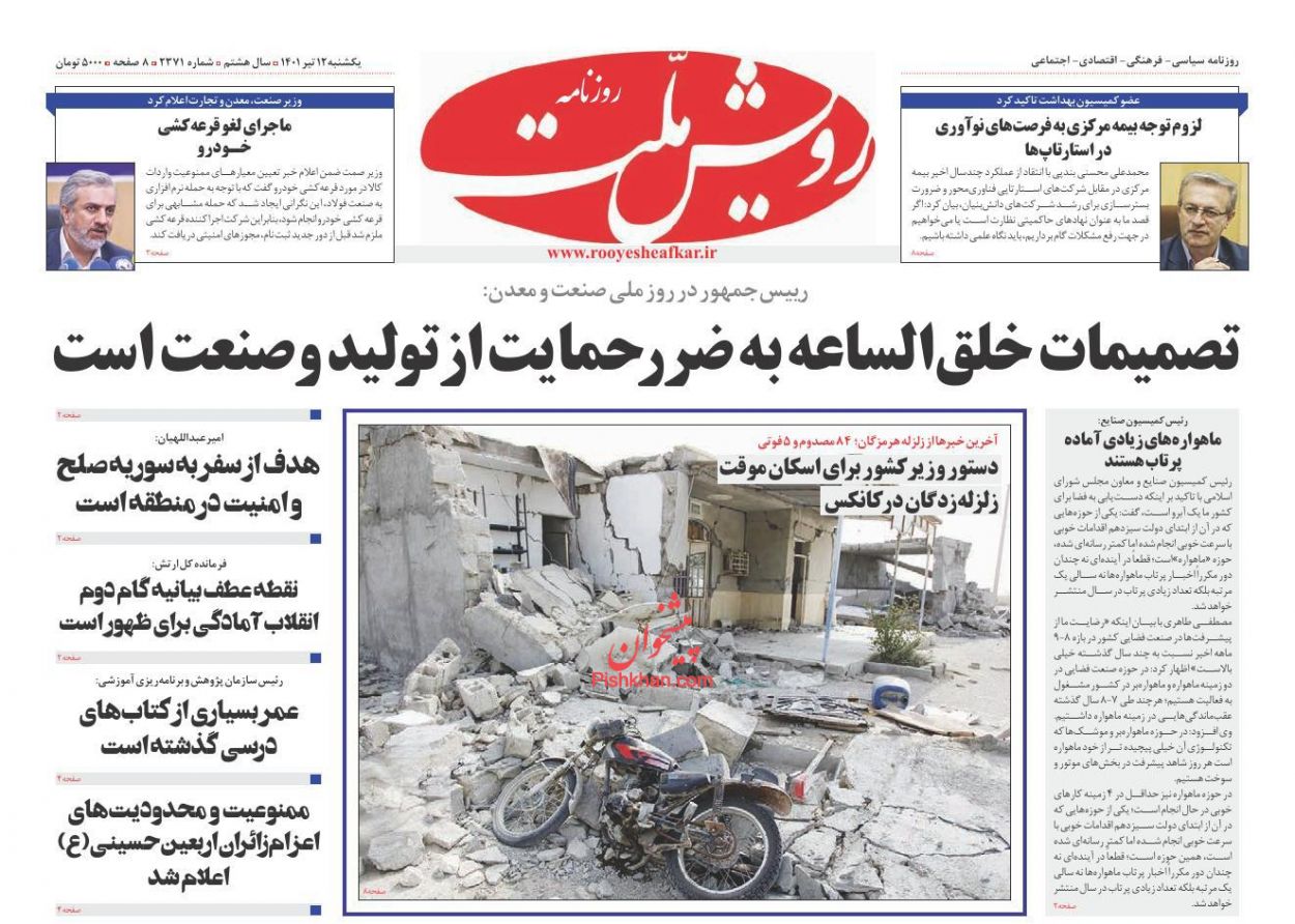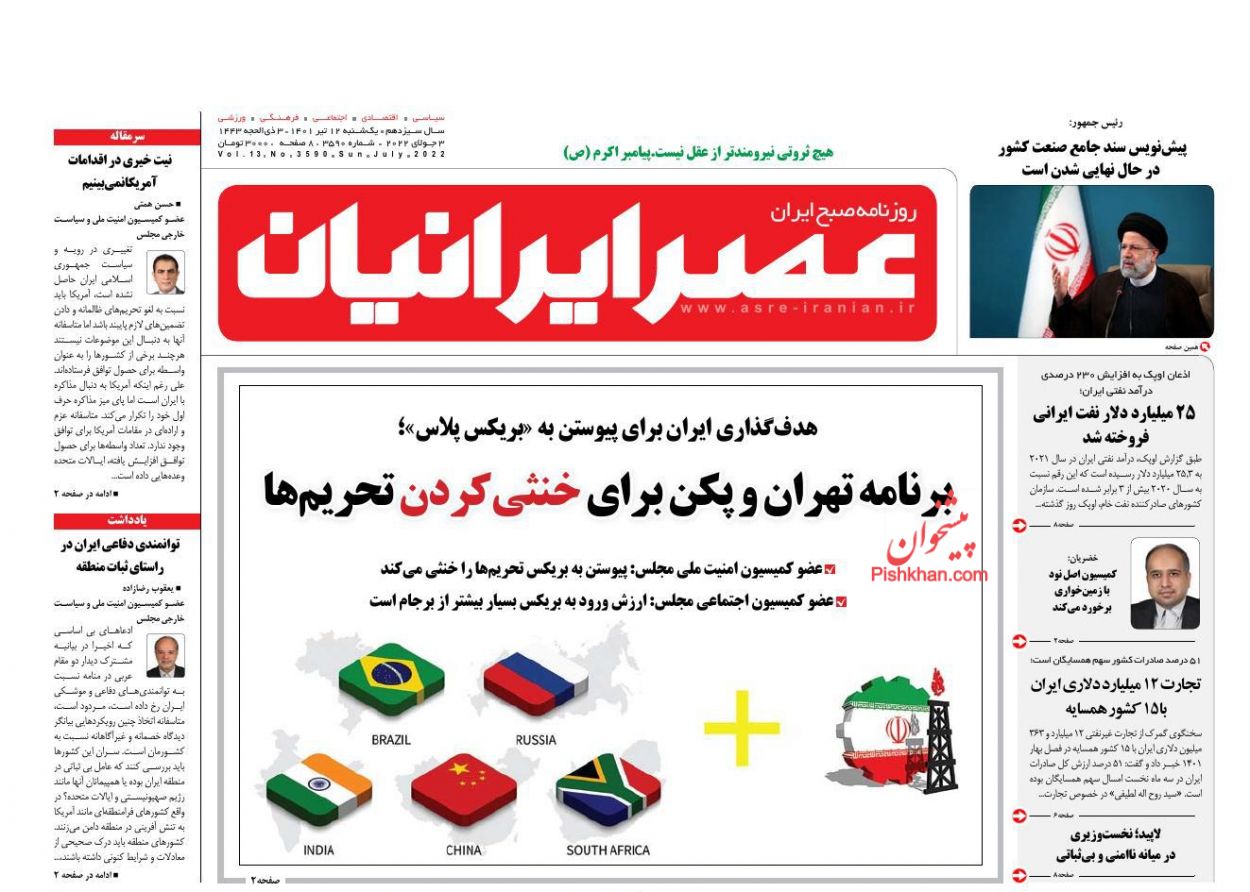 عصر ایرانیان ، یکشنبه ۱۲ تیر