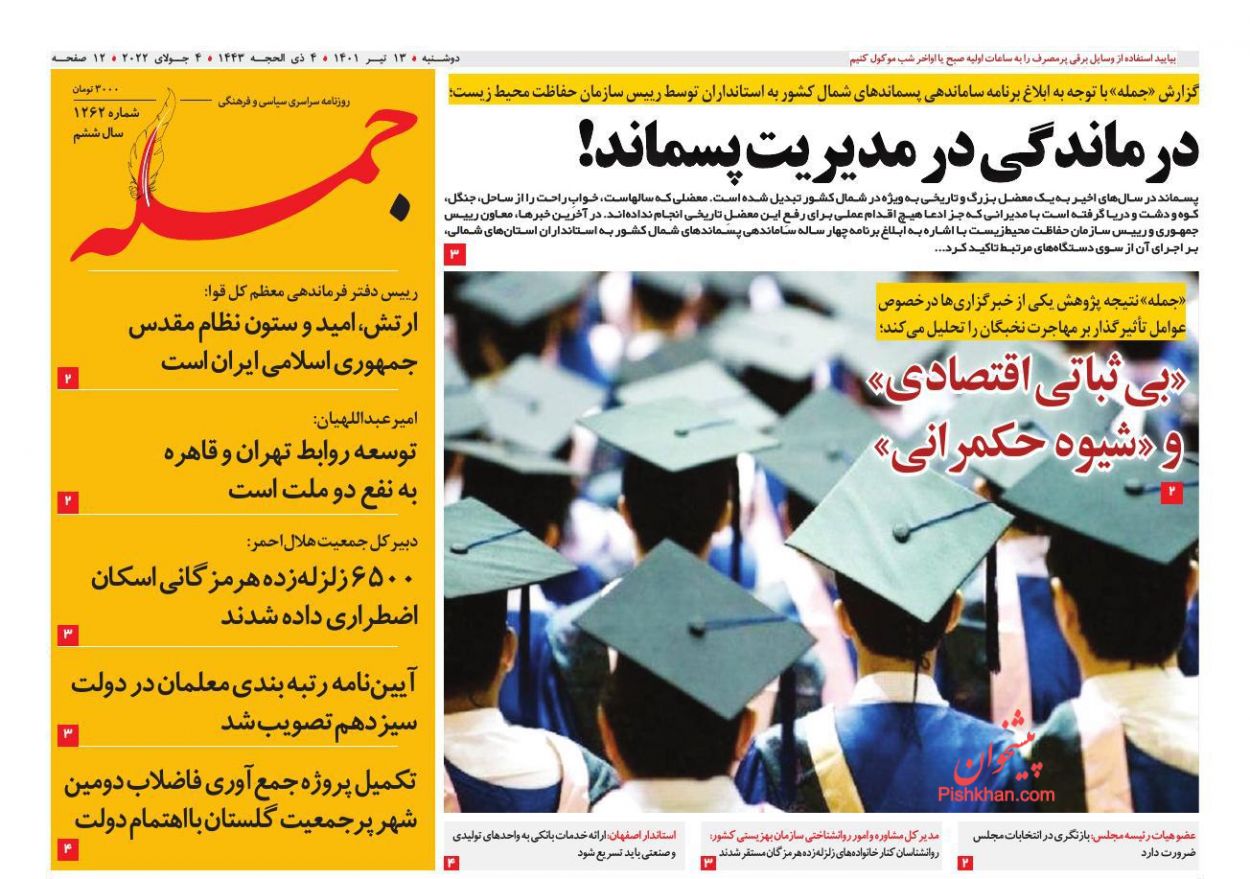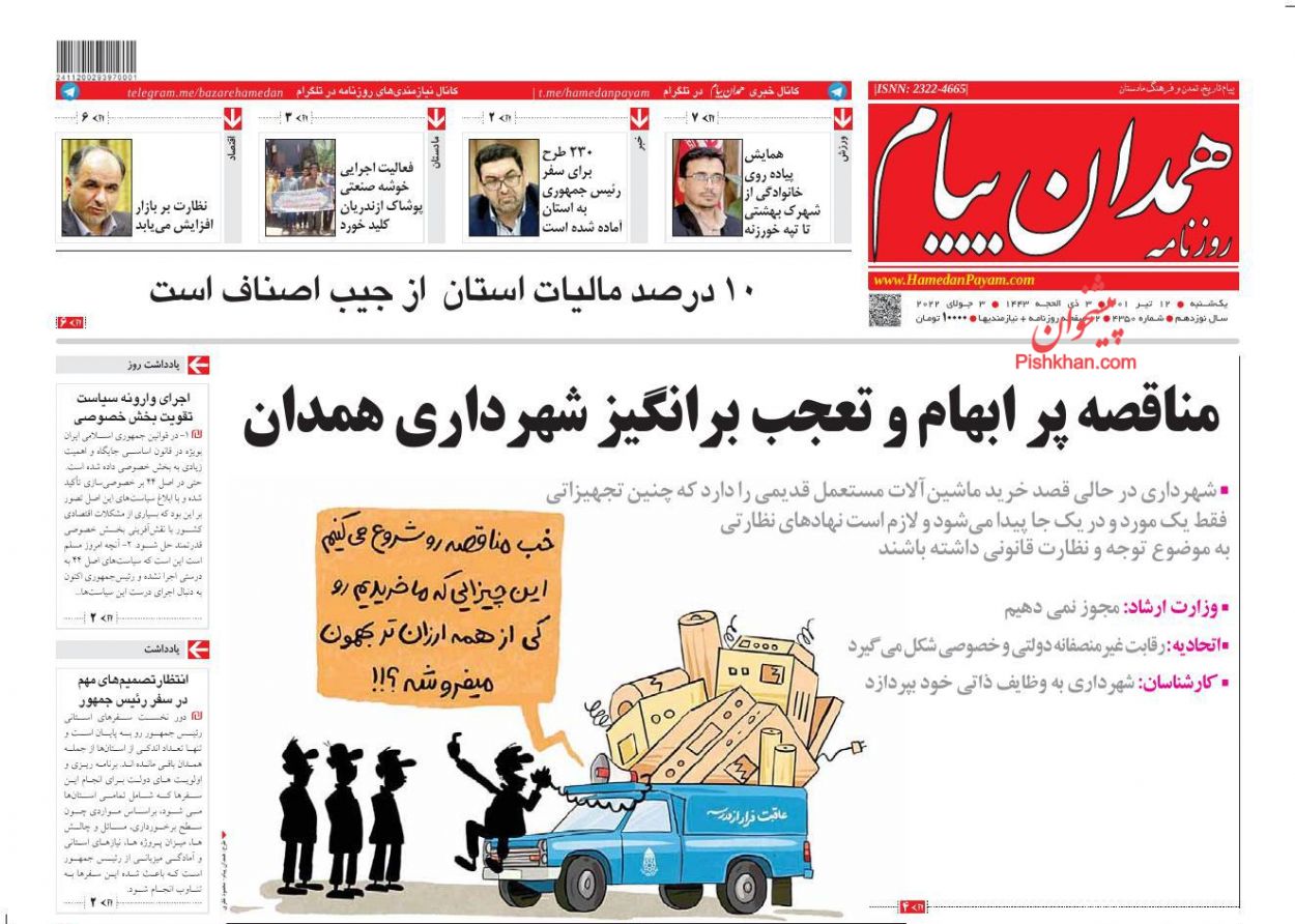 جمهوری اسلامی ، یکشنبه ۱۲ تیر