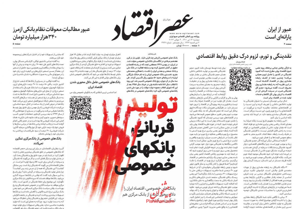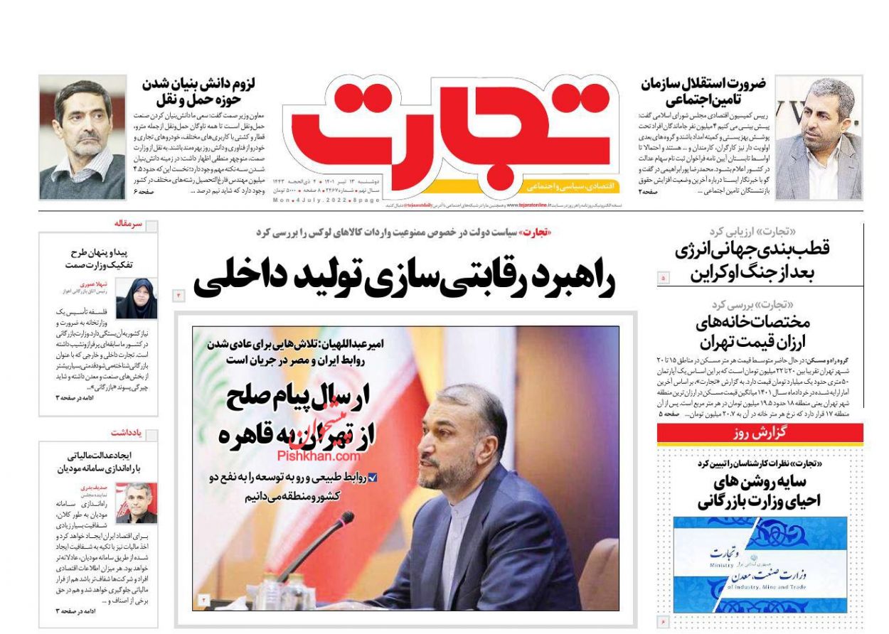 عصر اقتصاد ، دوشنبه ۱۳ تیر