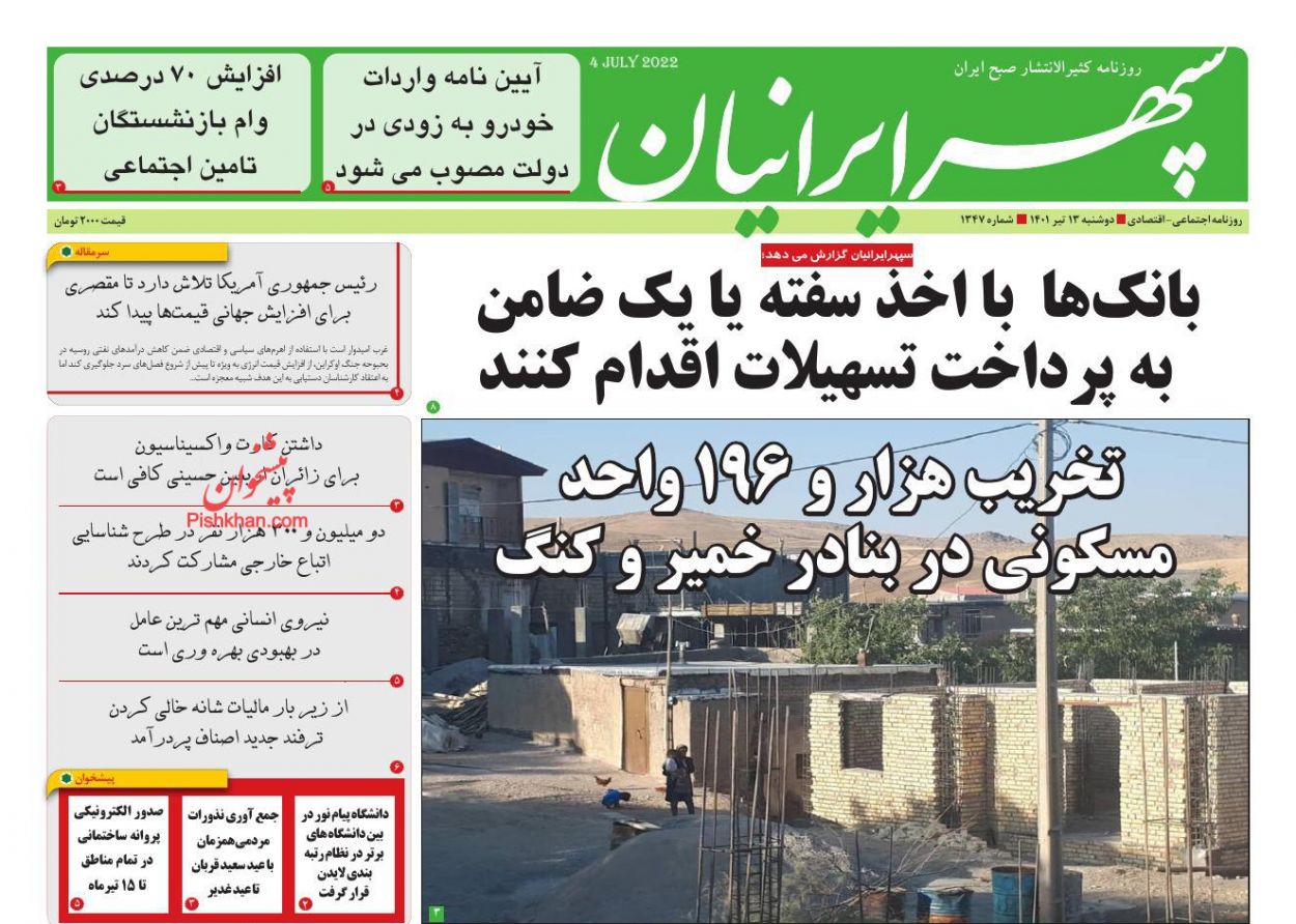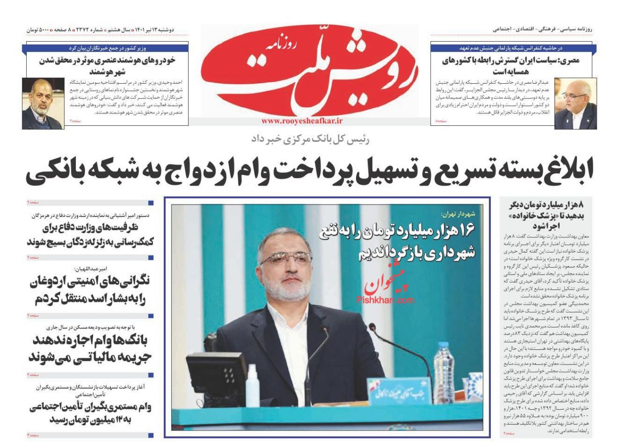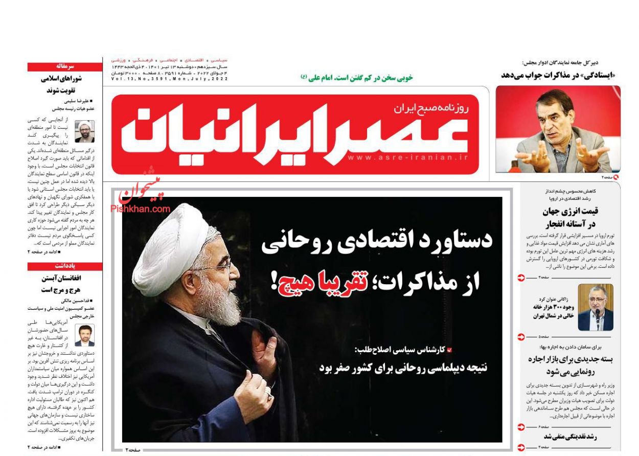 عصر ایرانیان ، دوشنبه ۱۳ تیر
