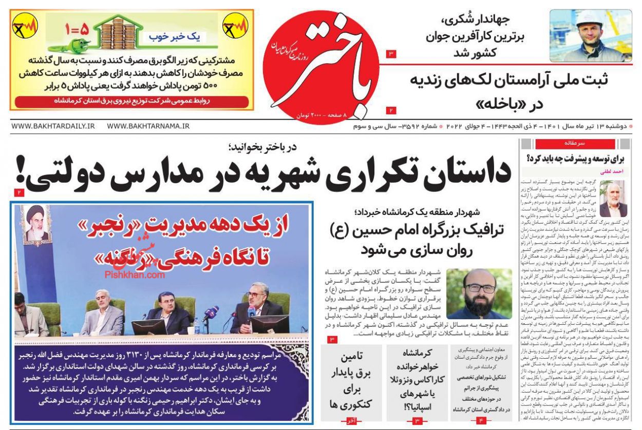 باختر ، دوشنبه ۱۳ تیر