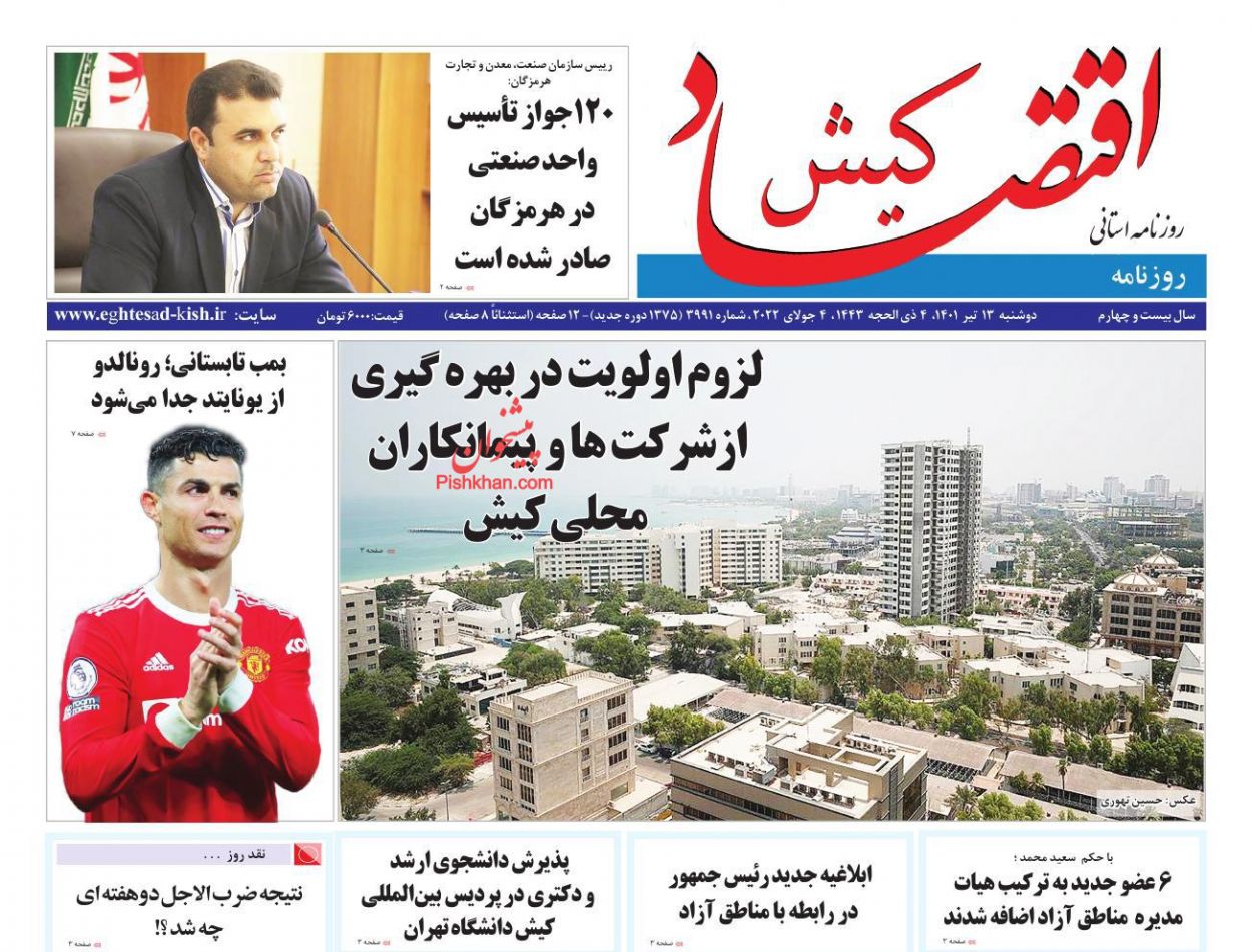 اقتصاد کیش ، دوشنبه ۱۳ تیر