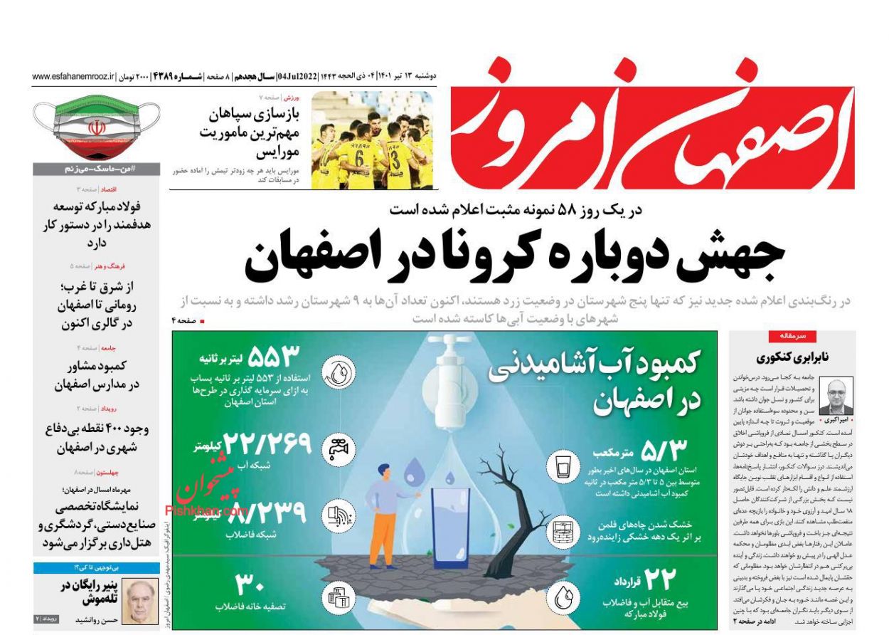 اصفهان امروز ، دوشنبه ۱۳ تیر