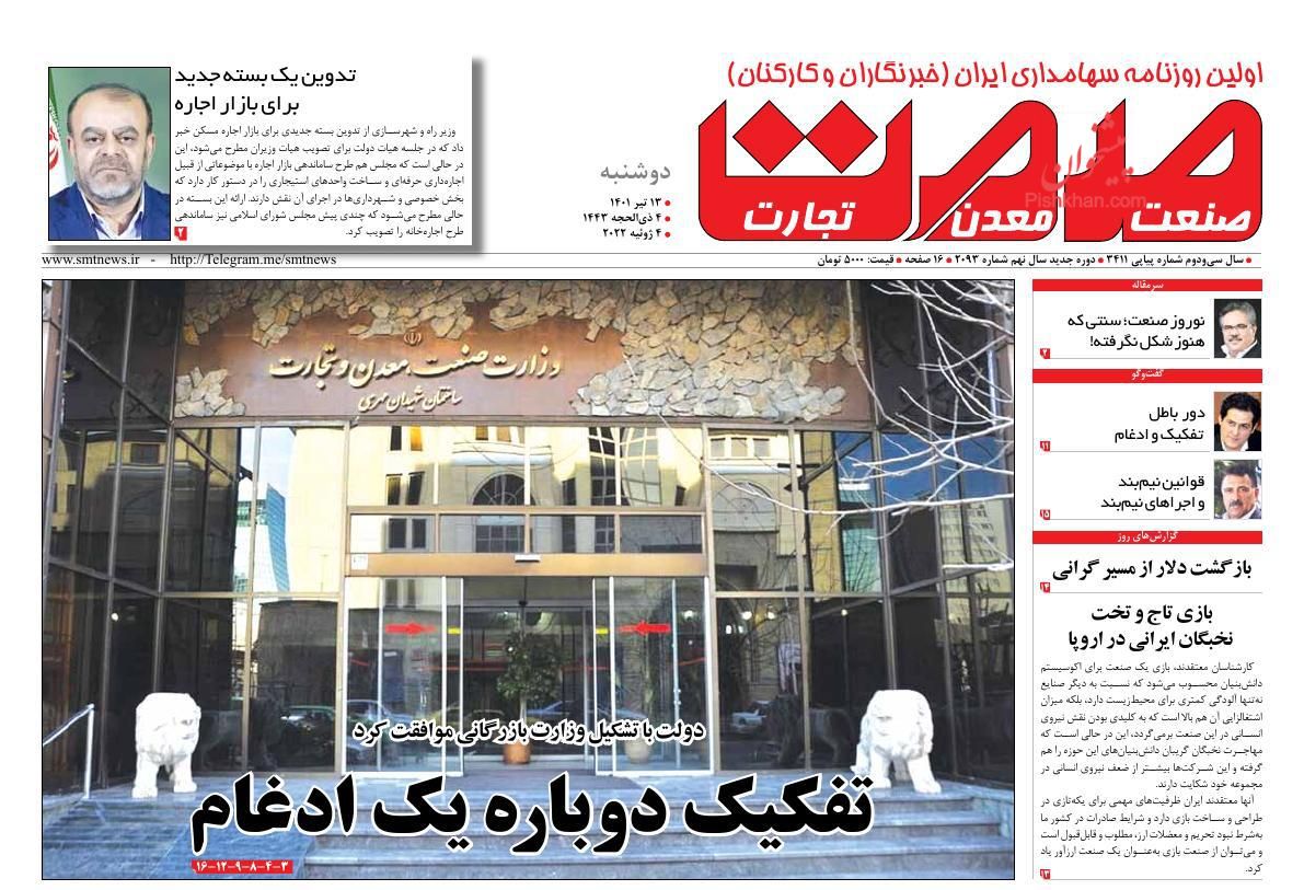جهان صنعت ، دوشنبه ۱۳ تیر