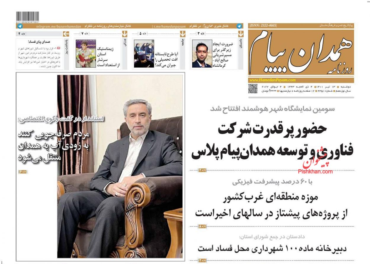 همدان پیام ، دوشنبه ۱۳ تیر