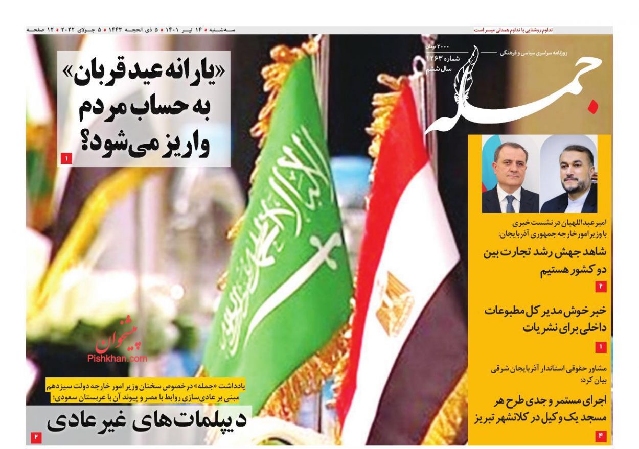 جمهوری اسلامی ، دوشنبه ۱۳ تیر
