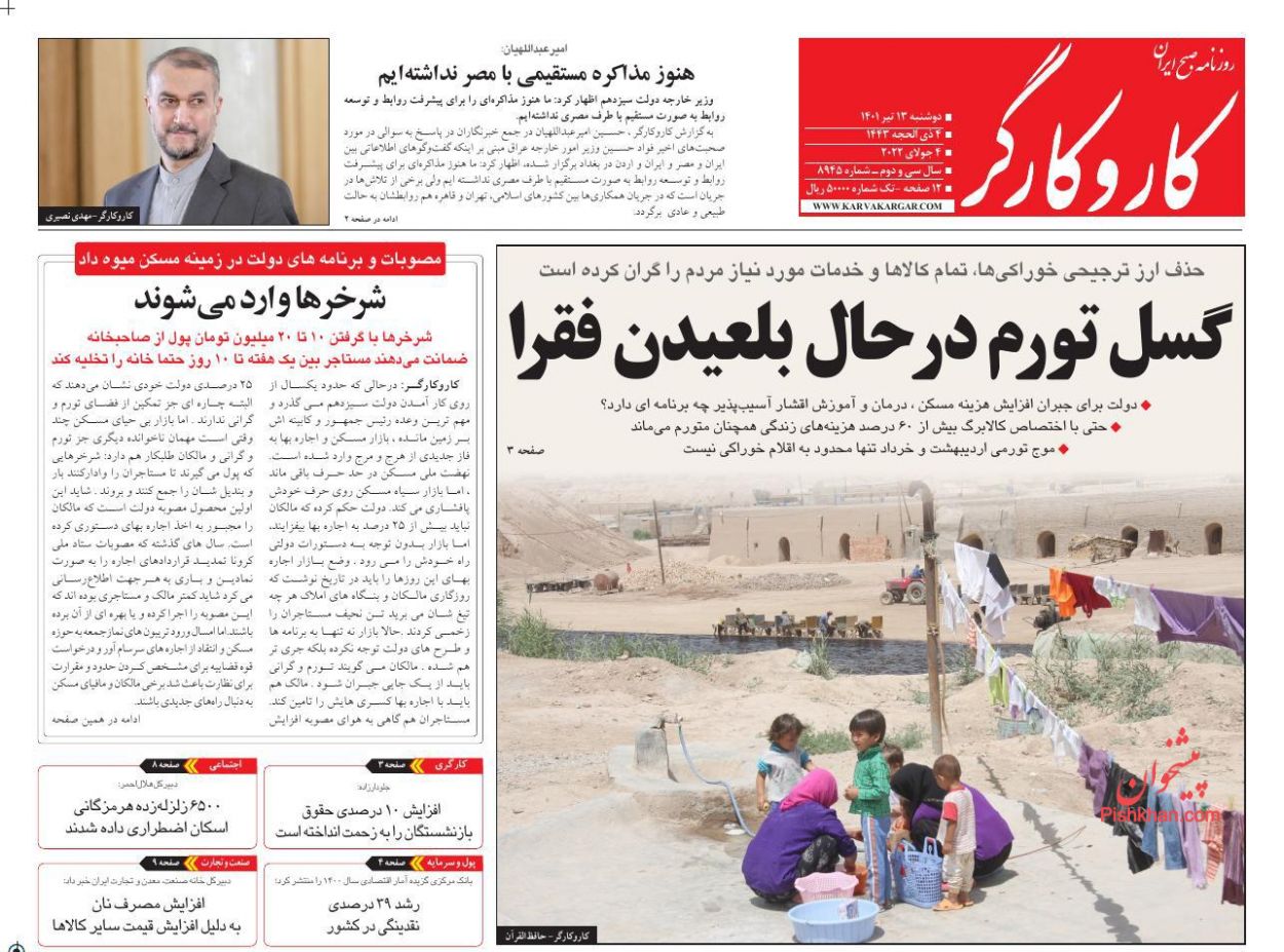 کار و کارگر ، دوشنبه ۱۳ تیر