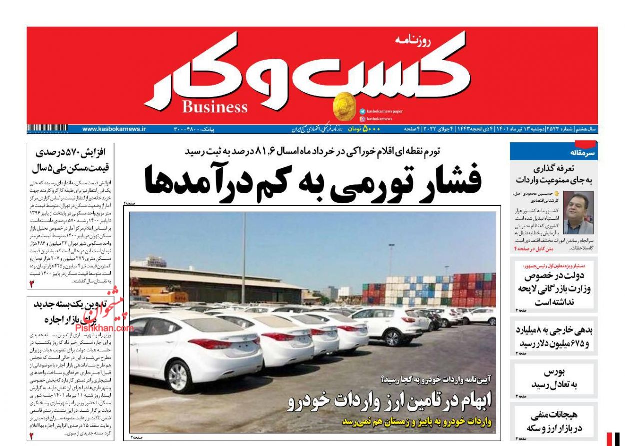 كسب و كار ، دوشنبه ۱۳ تیر
