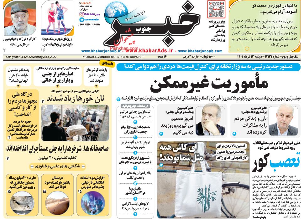 خبر جنوب ، دوشنبه ۱۳ تیر
