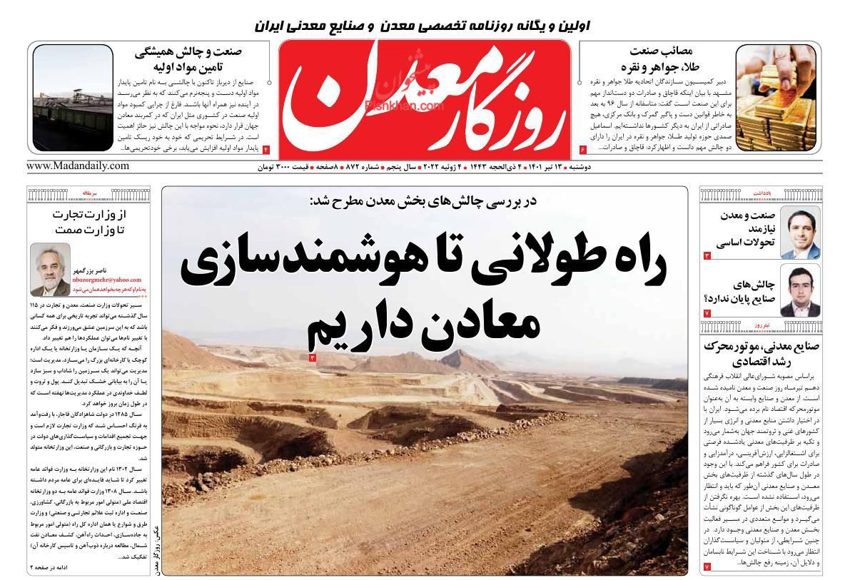 روزگار معدن ، دوشنبه ۱۳ تیر