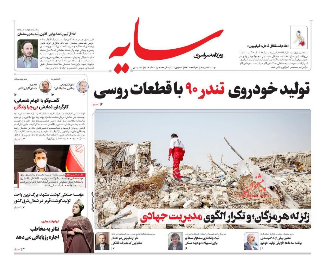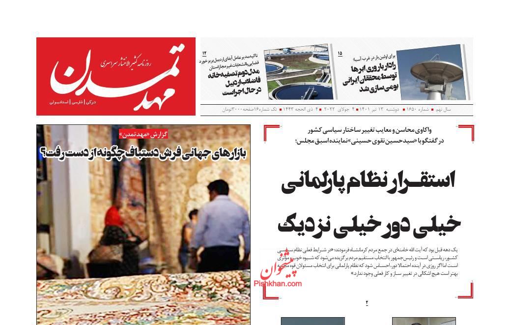 همشهری ، دوشنبه ۱۳ تیر