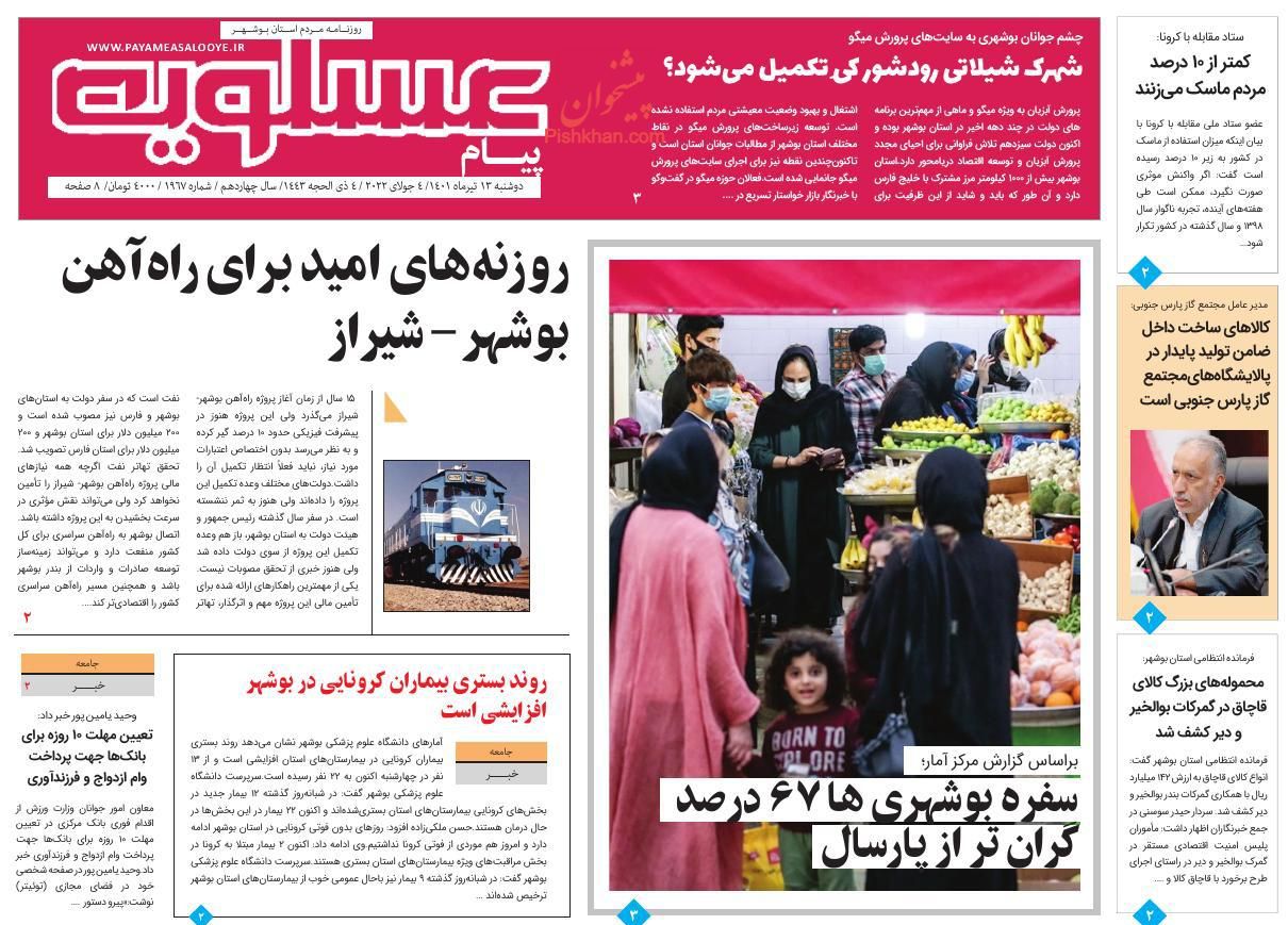 پیام عسلویه ، دوشنبه ۱۳ تیر